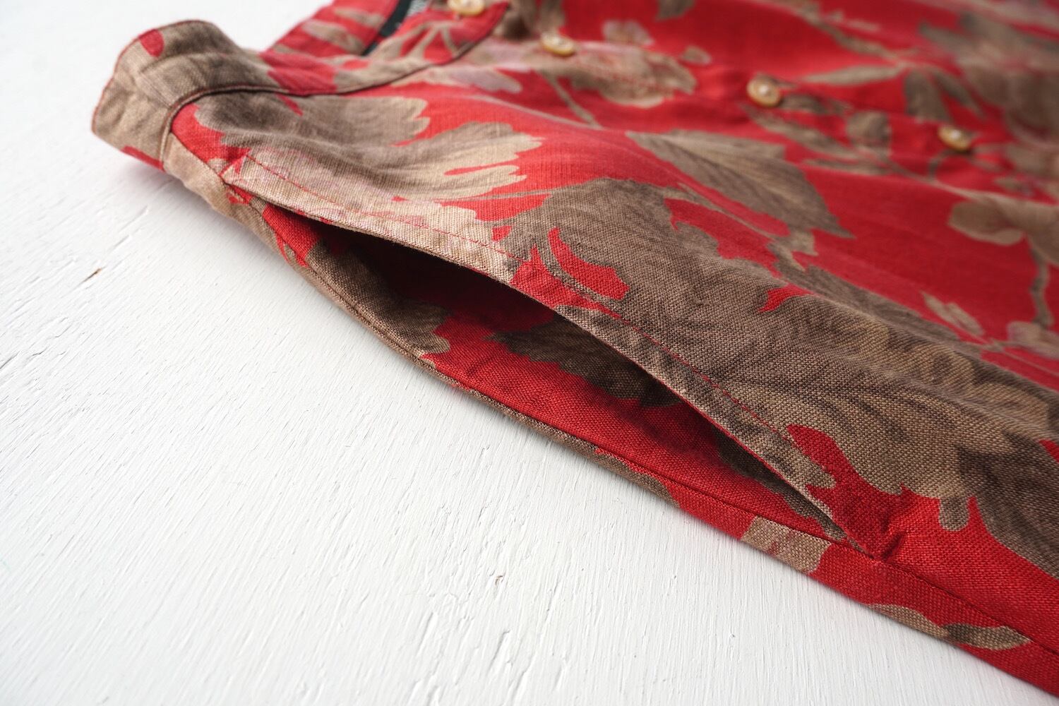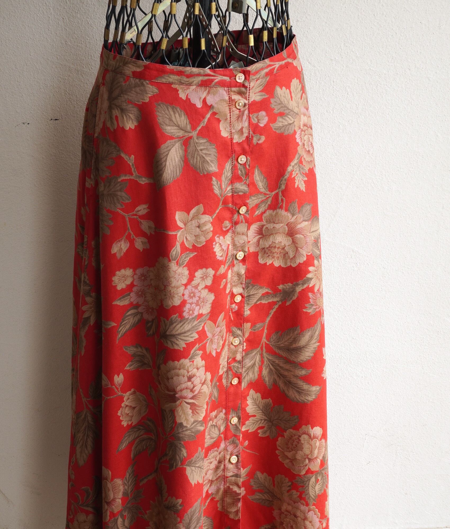 1990's [LAUREN] 100%リネン フローラルプリント フレアロングスカート レッド×ブラウン 表記(women's 4) ラルフローレン ヴィンテージ