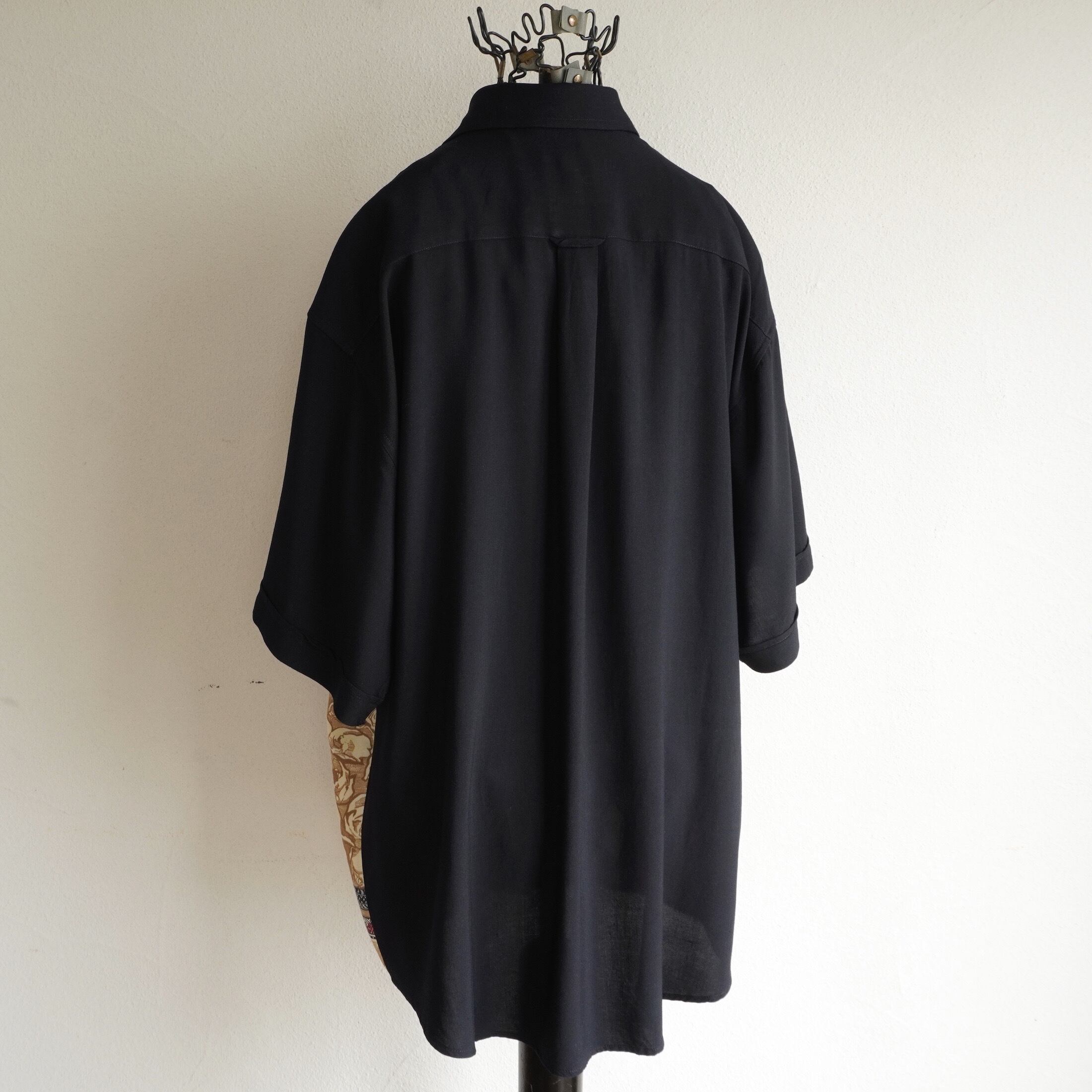1990's [Parametre] アートプリント パネル切り替え S/S ヴィスコースシャツ ブラック×ガーネット/ベージュ 実寸(men's XL程度) 柄シャツ ユーロ ヨーロッパ ヴィンテージ