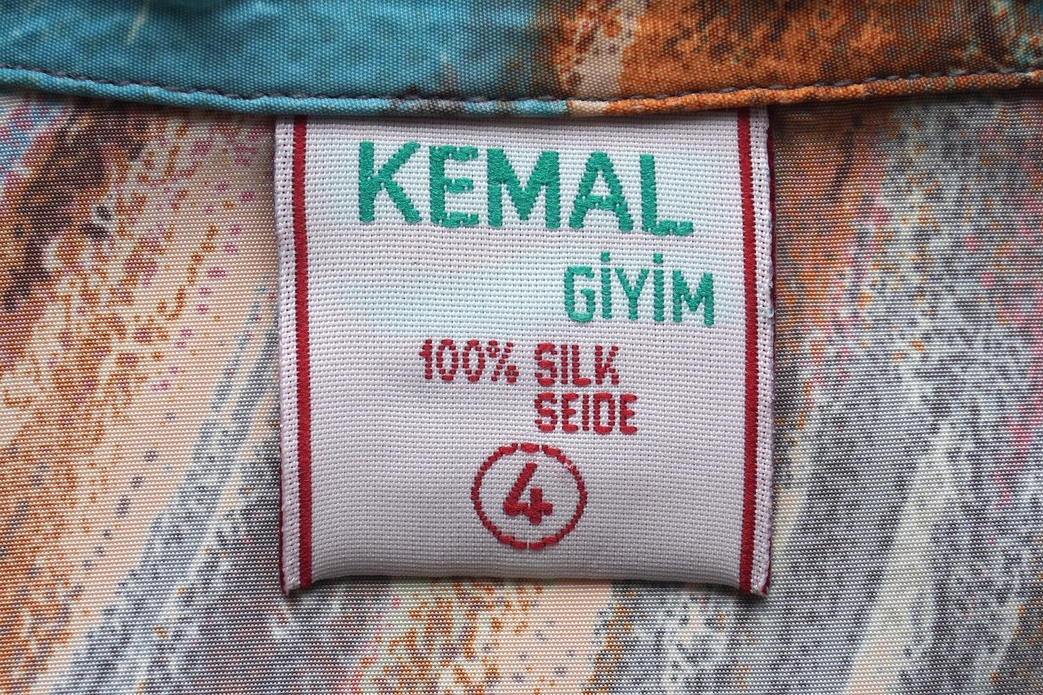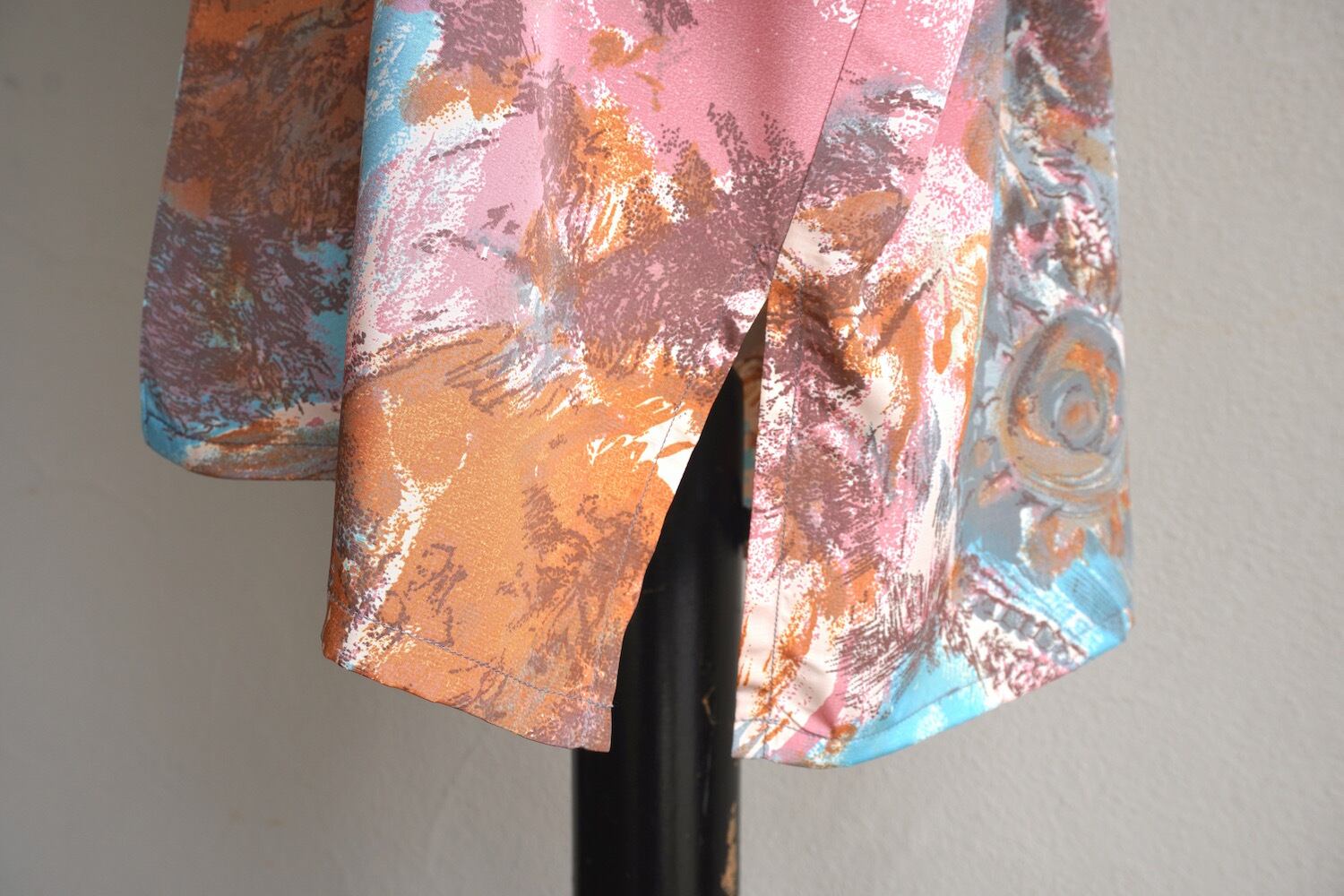 1980's〜 [KEMAL GIYIM] 抽象画プリント 100%シルク 3/4スリーブ テーラードカラーガウン 実寸(women's XL程度) ヨーロッパ ユーロ ヴィンテージ