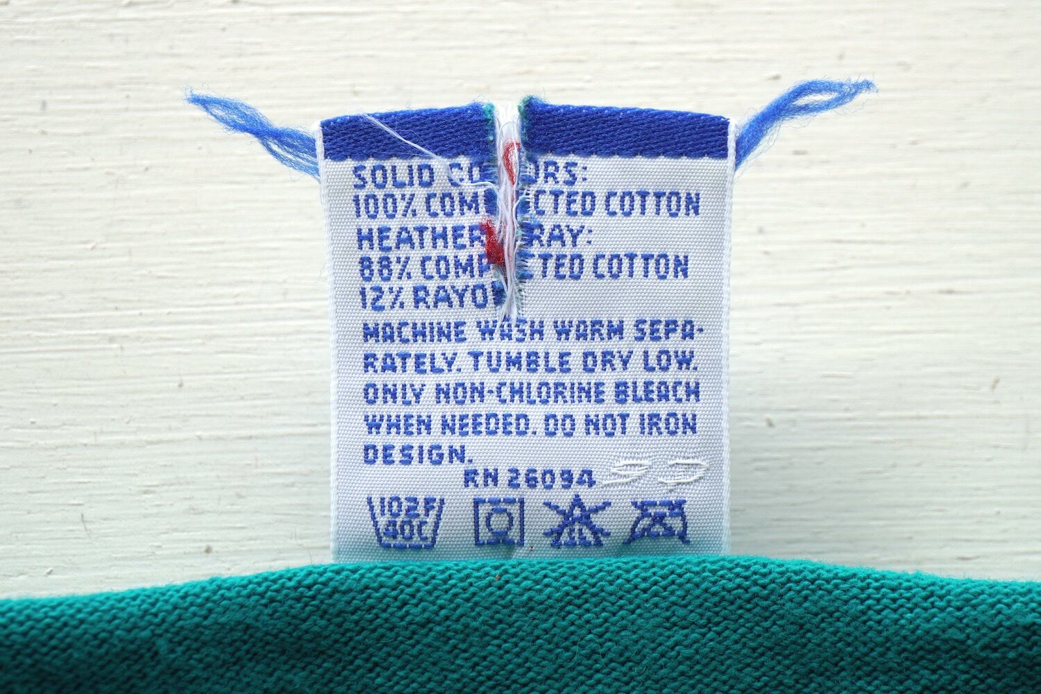 1990's USA製 [Champion] 青刺繍タグ 無地 S/S Tシャツ ターコイズグリーン 実寸(men's XS ≒ women's M程度) シングルステッチ 目無し チャンピオン ヴィンテージ | MAGNOLIA WEBSTORE