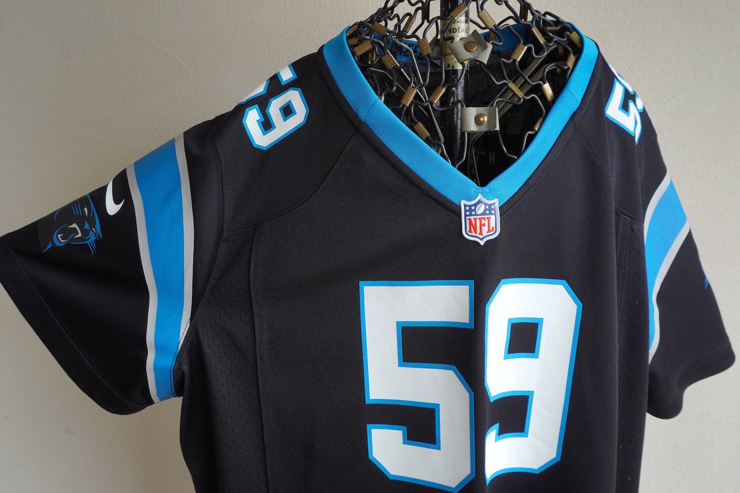 NFL「CAROLINA PANTHERS」#59 "KUECHLY"モデルのフットボールゲームジャージー。