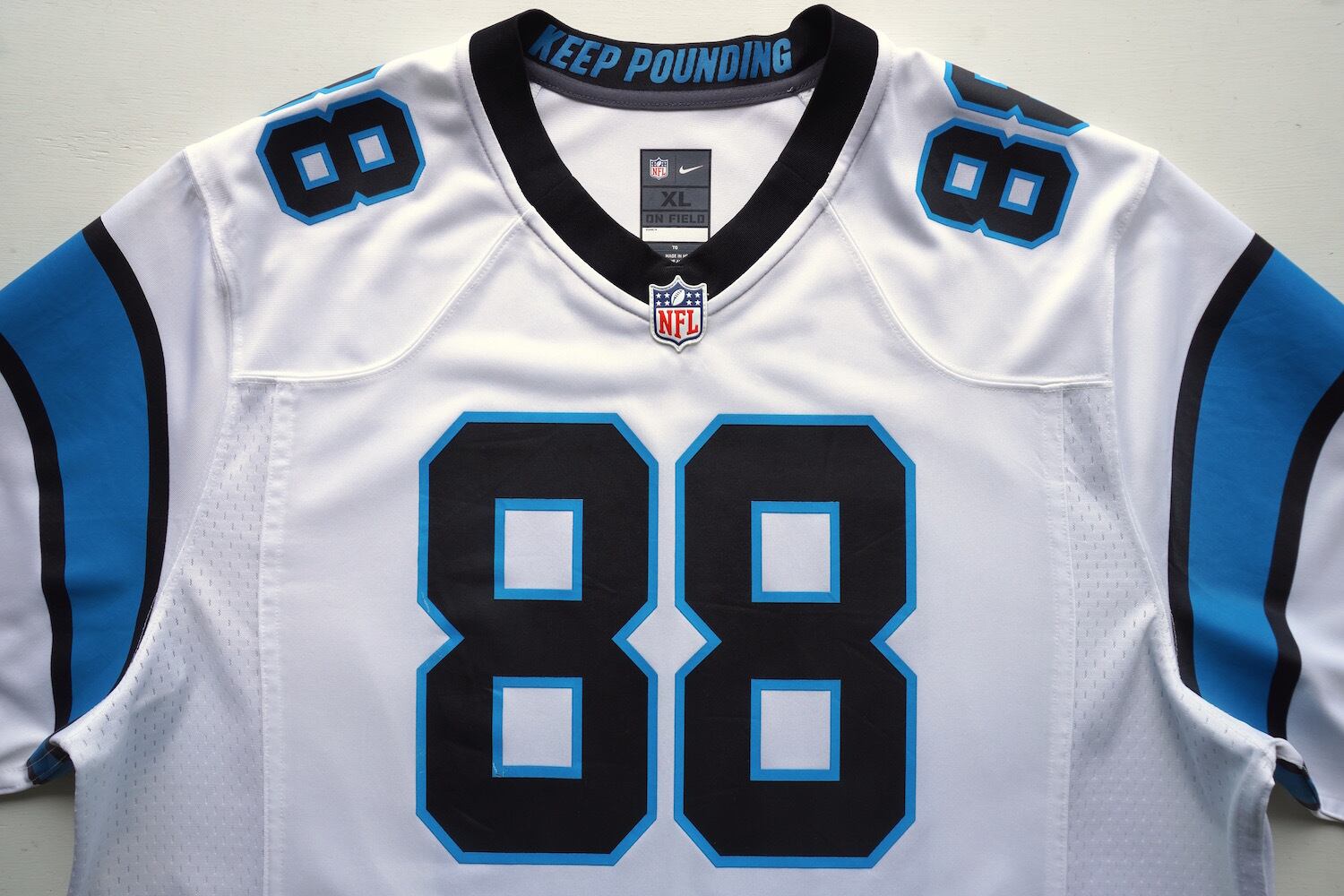 2010's [NIKE] NFL "CAROLINA PANTHERS" #88 OLSEN フットボールゲームジャージー ホワイト 表記(men's XL) レプリカユニフォーム ゲームシャツ パンサーズ アメフト ナイキ