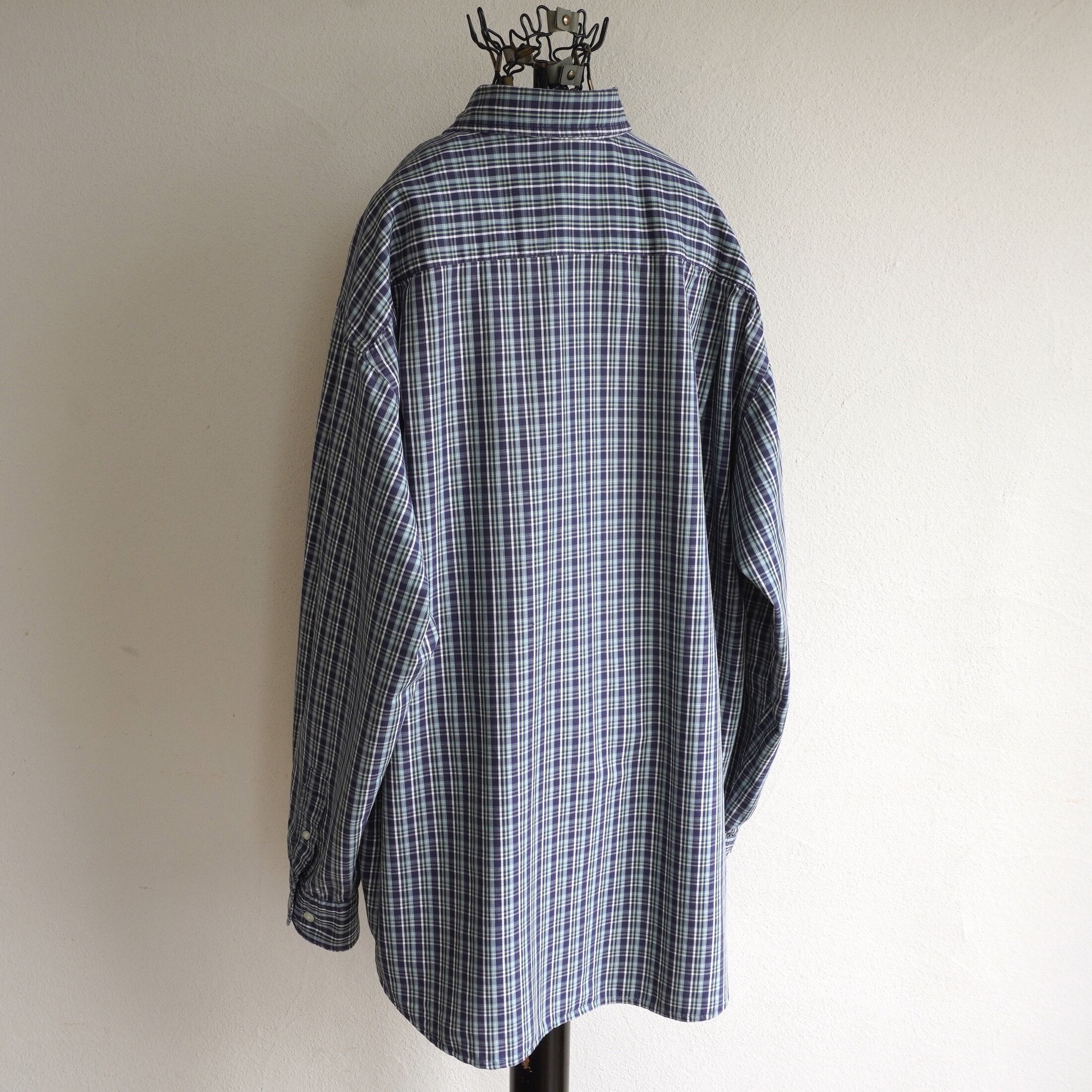 1990's [GAP] 紺刺繍タグ L/S コットンシャツ ネイビー系チェック 表記(men's L) ルーズフィット オールドギャップ ヴィンテージ