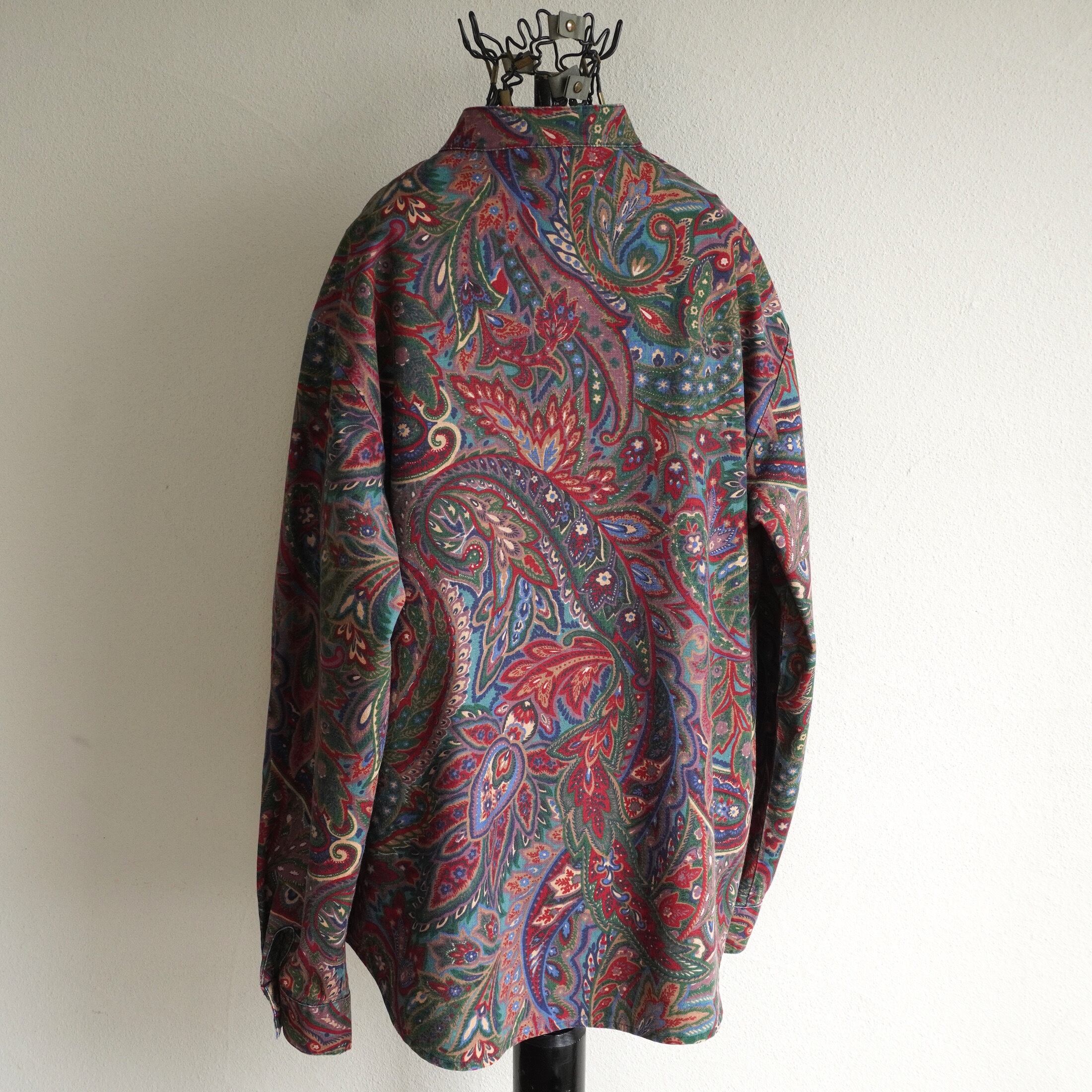 1990's USA製 [F STOP] ペイズリープリント スタンドカラー L/S コットンシャツ バーガンディー 表記(women's M) 総柄 ヴィンテージ | MAGNOLIA WEBSTORE