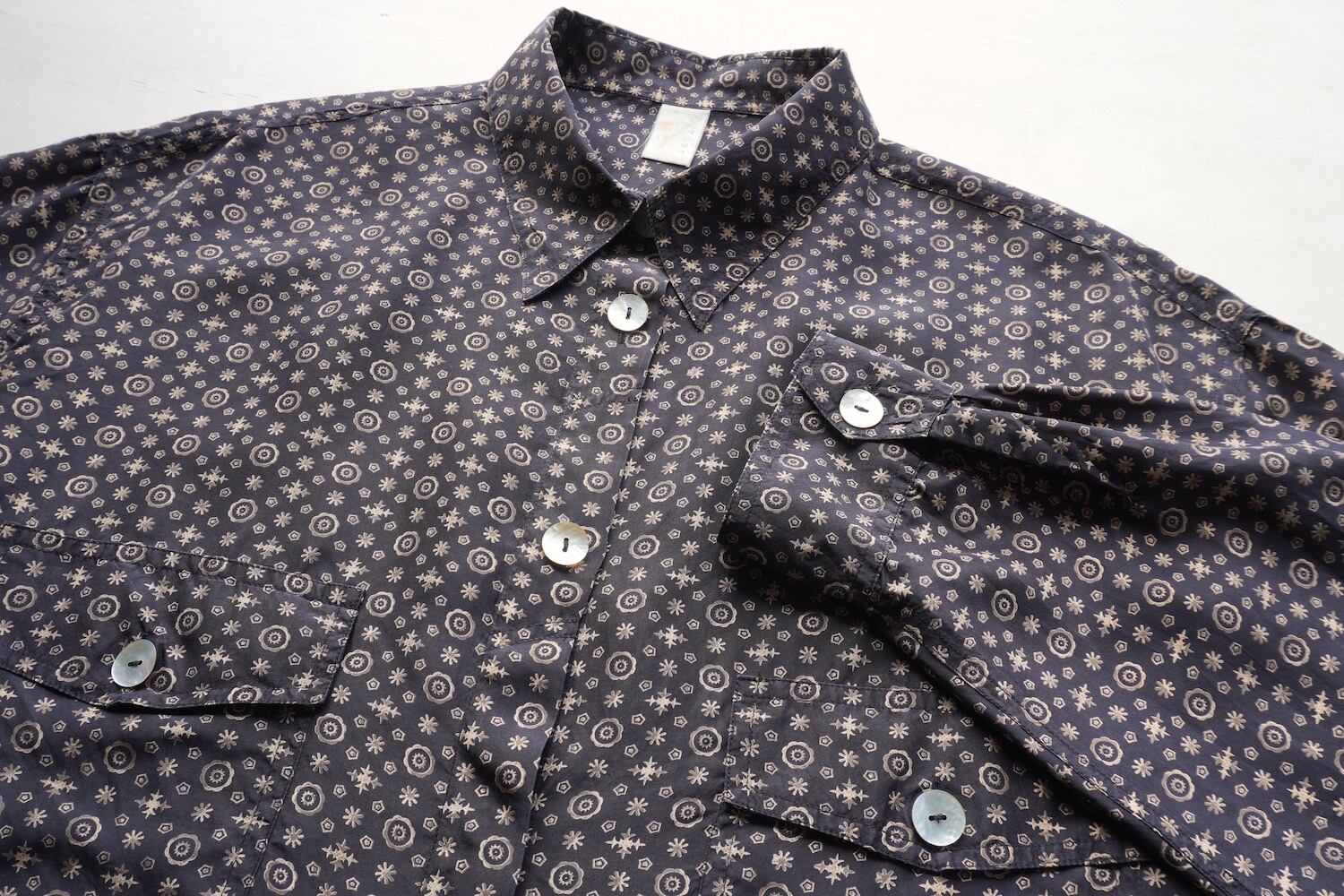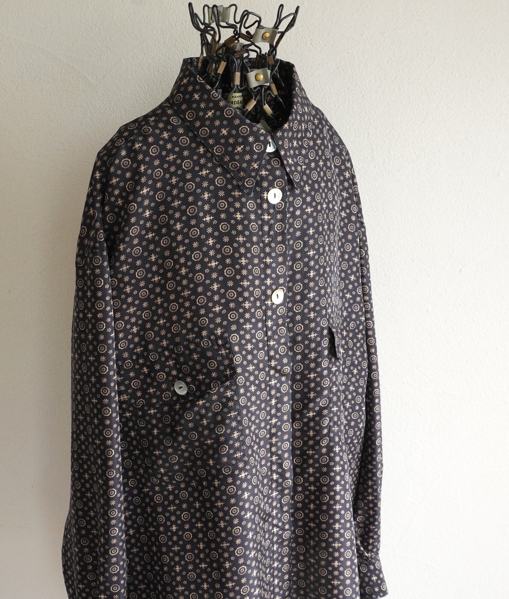 1990's ユーロ 100%シルク L/S ビッグシルエットシャツ ブラック×ブラウン 実寸(women's XL〜程度) ヨーロッパ ヴィンテージ