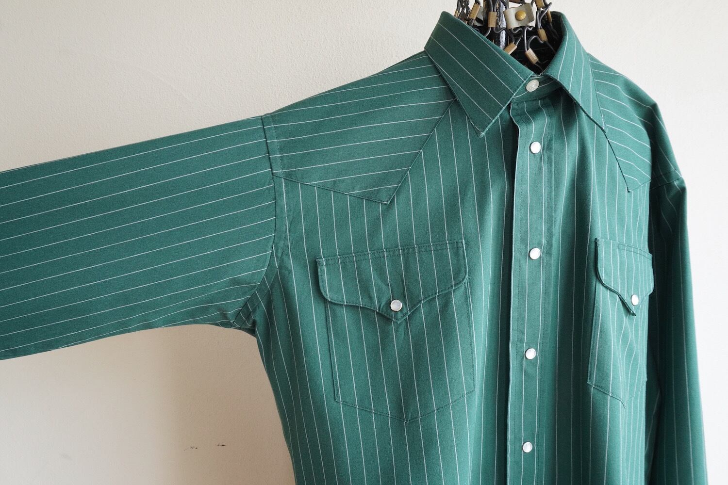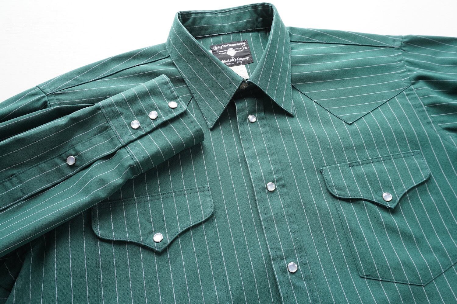 1990's USA製 [Flying R Ranchwear] ピンストライプ柄 L/S ウエスタンシャツ グリーン 表記(men's 16-1/2 35) Ruddock Mfg Company ヴィンテージ | MAGNOLIA WEBSTORE