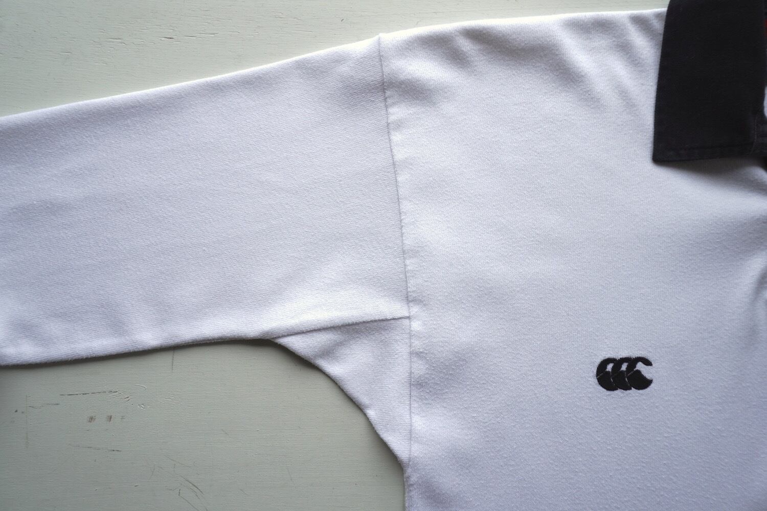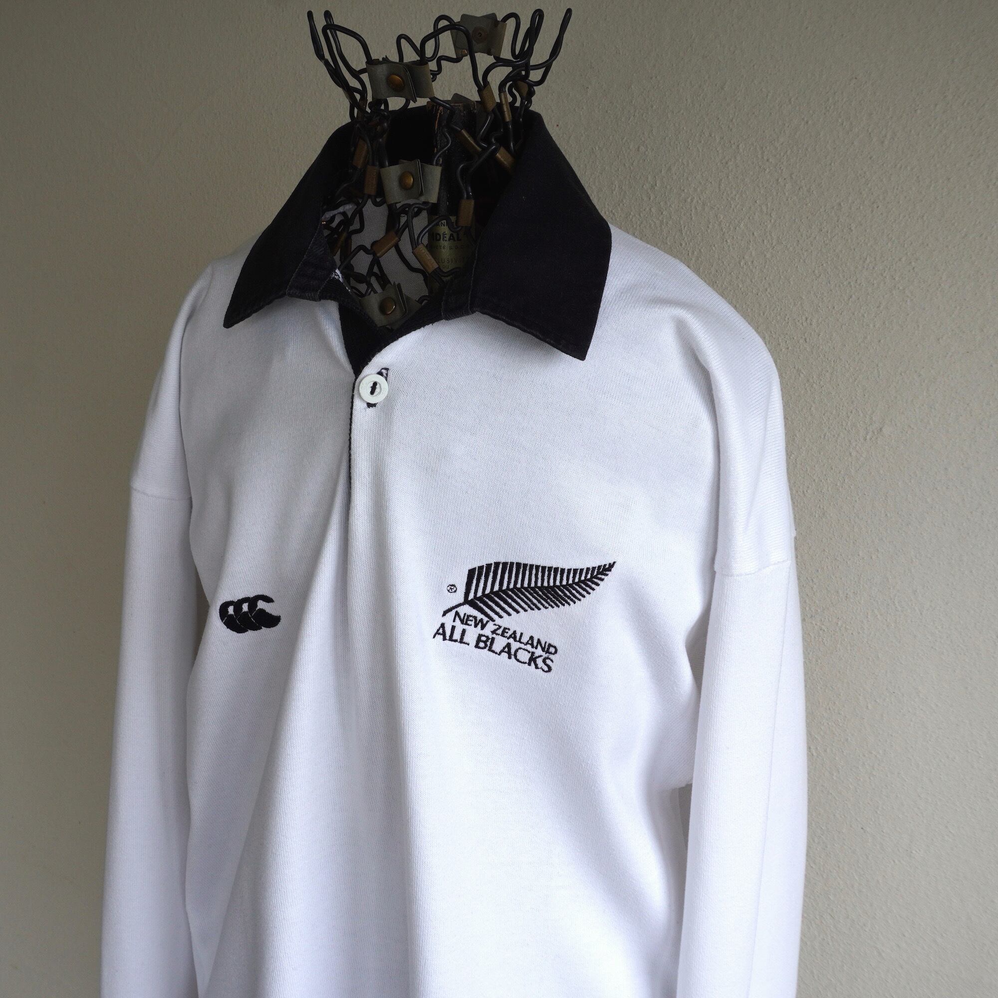 1990's [CANTERBURY OF NEW ZEALAND] "ALL BLACKS" L/S ラガーシャツ アウェイカラー ホワイト×ブラック 表記(men's S) オールブラックス カンタベリー ヴィンテージ