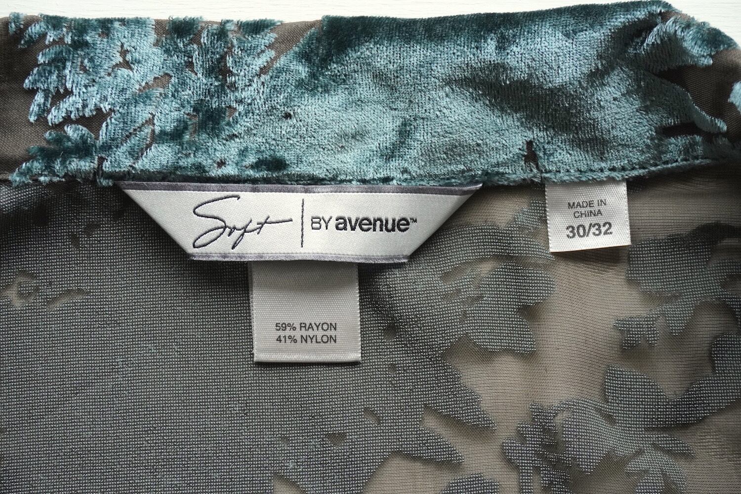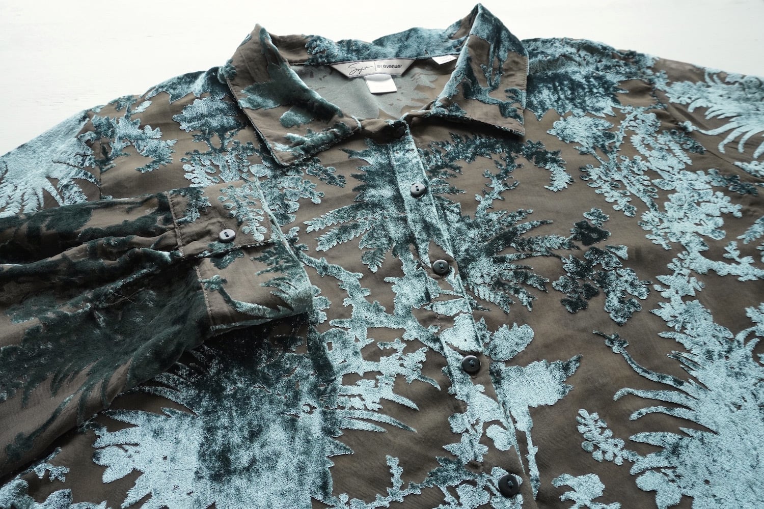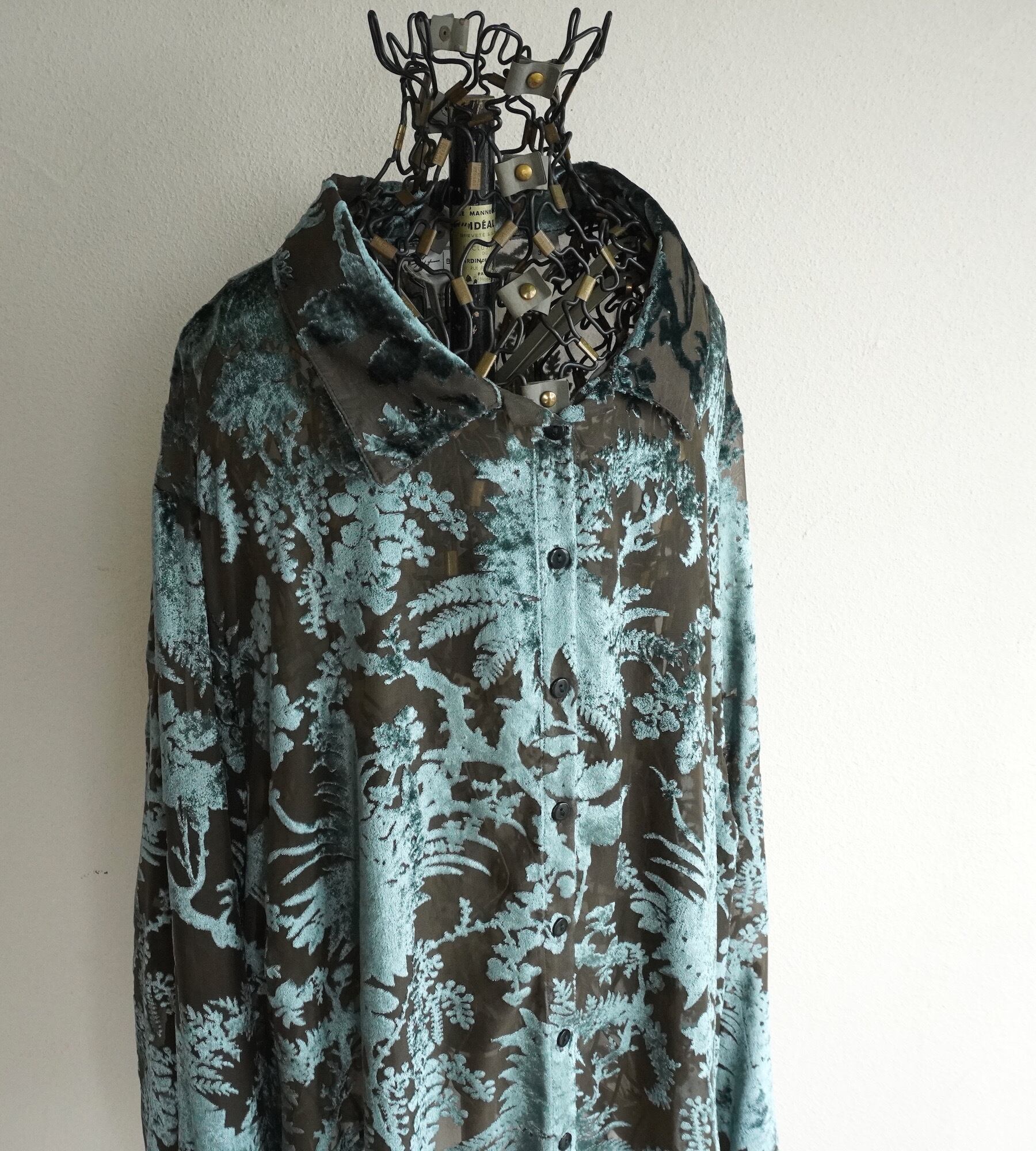 2000's〜 [avenue] バーンアウト ボタニカルパターン ビッグシルエット シアーブラウス ペールサックスブルー×チャコール 表記(women's 30/32) シースルー ベルベット ベロア Y2K