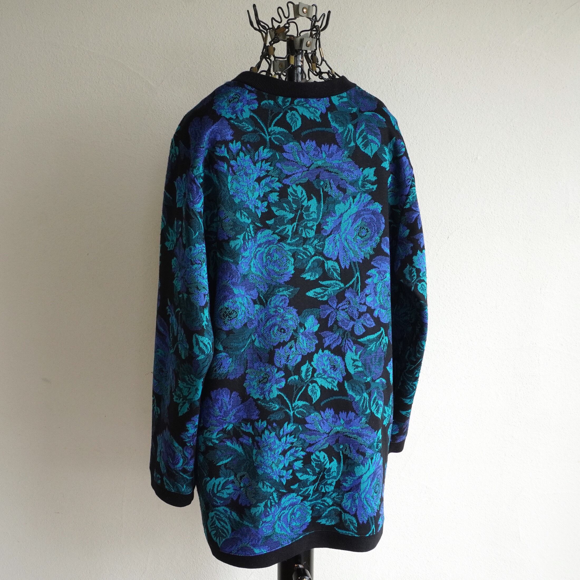 1980's [Cricket LANE] フローラル柄 セミロング L/S プルオーバートップ ブラック×ブルー/グリーン 実寸(women's M程度) 花柄 スウェット ヴィンテージ | MAGNOLIA WEBSTORE