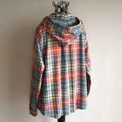 カラーリングの良い暖色系マドラスチェックの、フルジップコットンフランネルシャツパーカ。