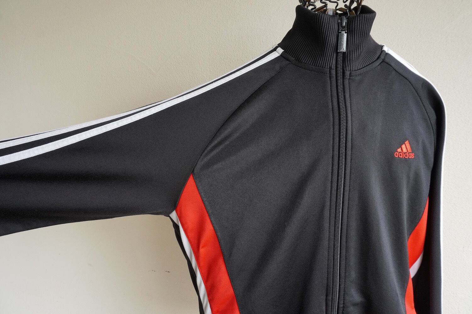 2010's [adidas] 3ストライプス&パフォーマンスロゴ ジャージートラックジャケット ブラック×レッド/ホワイト 実寸(women's M程度) アディダス | MAGNOLIA WEBSTORE