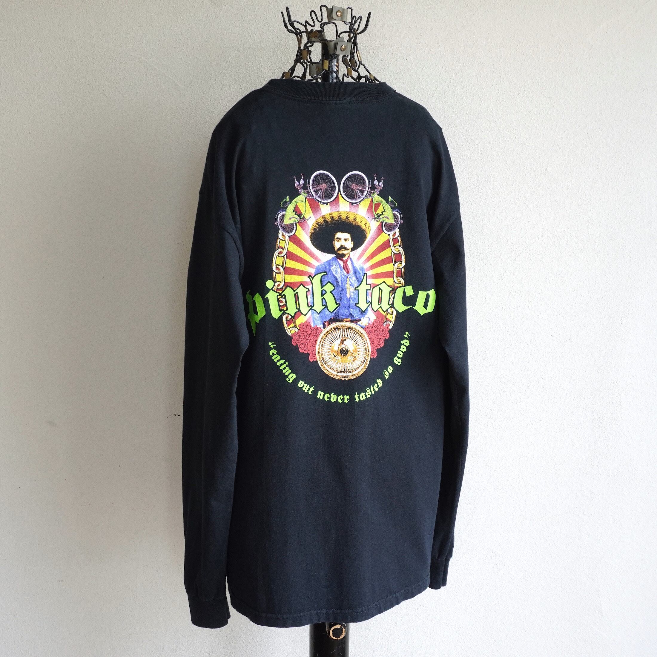 1990's〜 "pink taco" LAS VEGAS 1号店 L/S プリントTシャツ ブラック 表記(men's M) Hard Rock HOTEL & CASINO ピンクタコ タコス ヴィンテージ レア