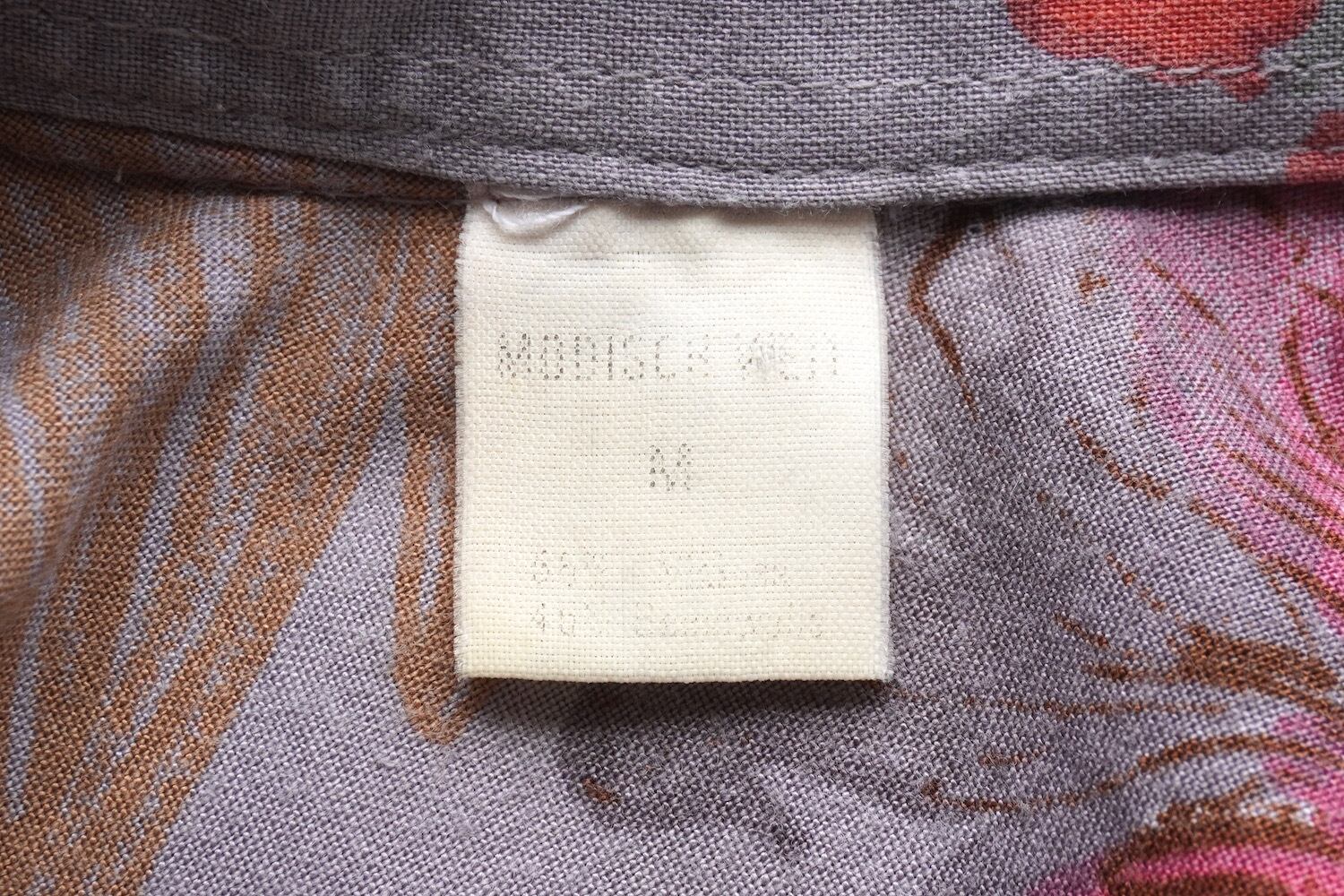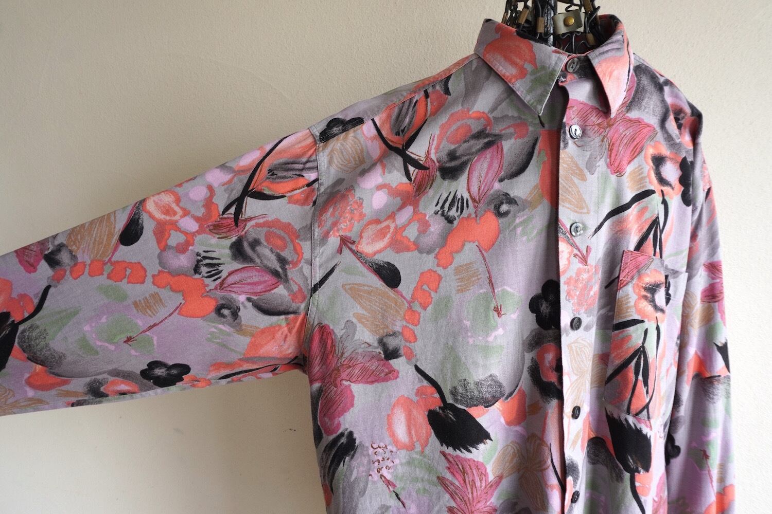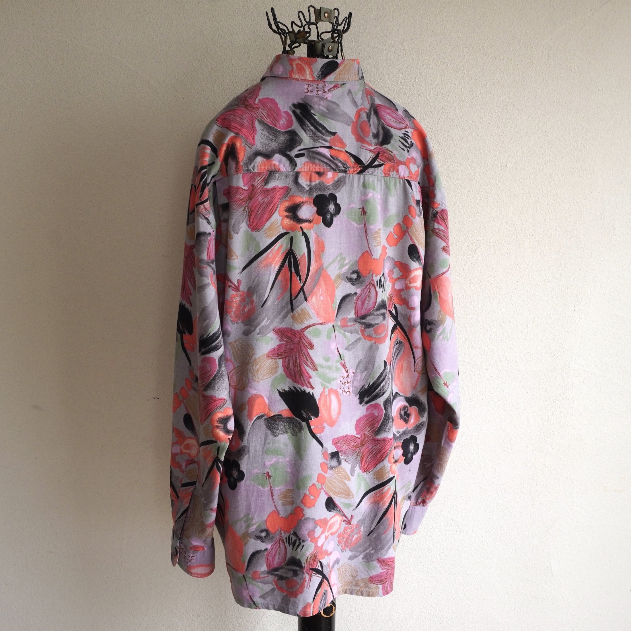 1990's [Gino di Roma] フローラル/ボタニカル アートプリント L/S ボックスカットシャツ ライラック 表記(men's M) 総柄シャツ ユーロ ヨーロッパ ヴィンテージ