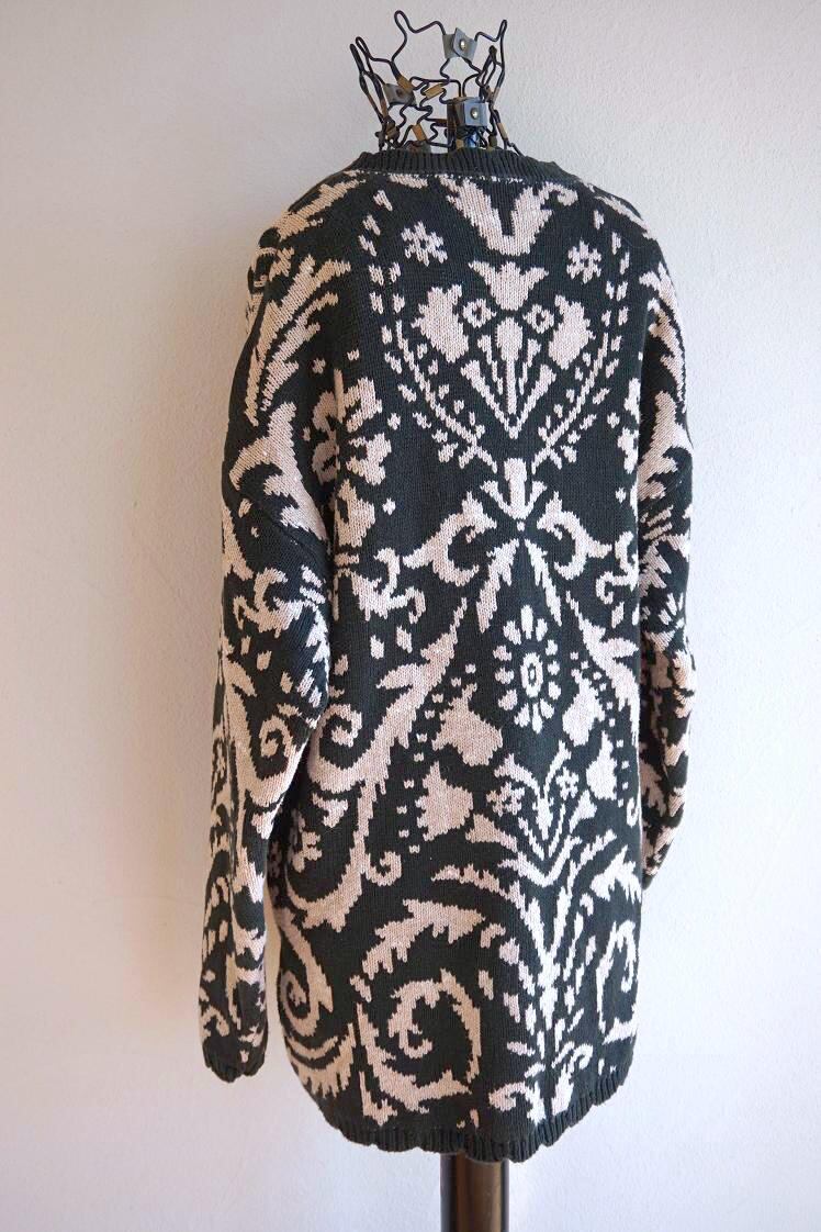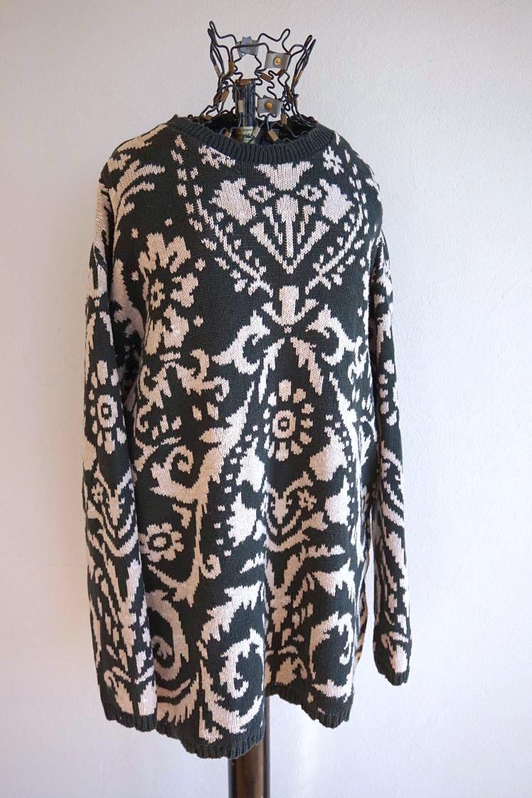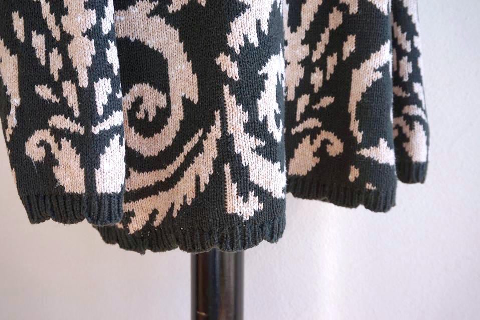 色味良く、雰囲気の良いロココ調柄のコットンニットセーター。