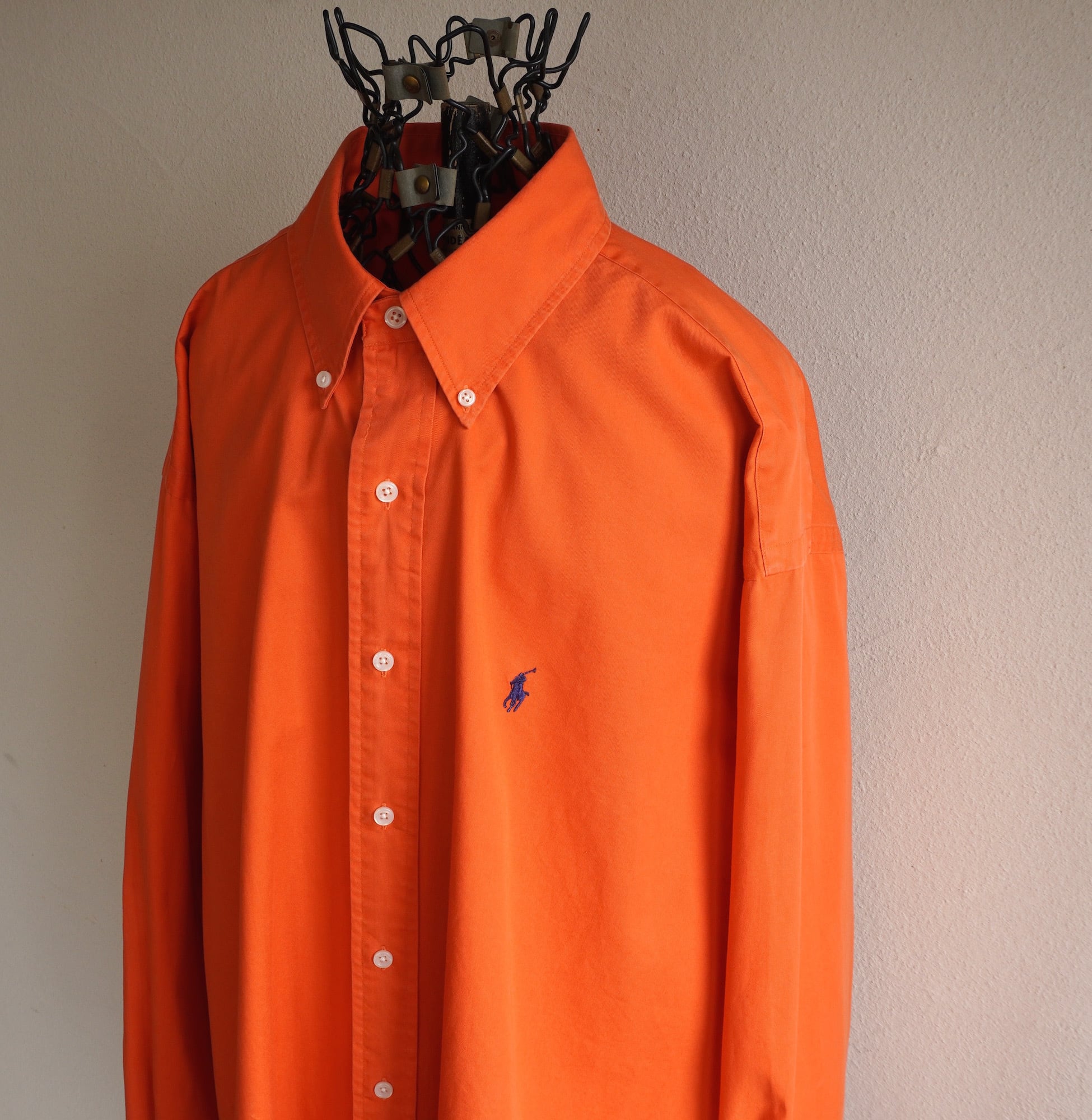 1990's [Ralph Lauren] "BLAKE" ワンポイントポニー刺繍 L/S ボタンダウン コットンシャツ オレンジ 表記(men's L) ソリッド 無地 ラルフローレン オールド ヴィンテージ