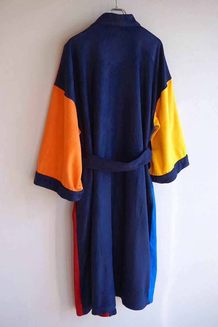 ネイビー×ブルー×レッド×オレンジ×イエロー、クレイジーパターンのフリースガウン。