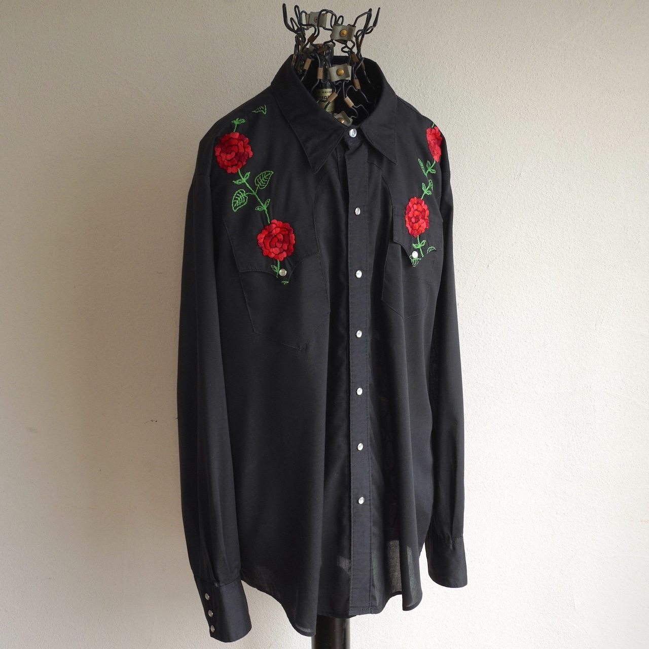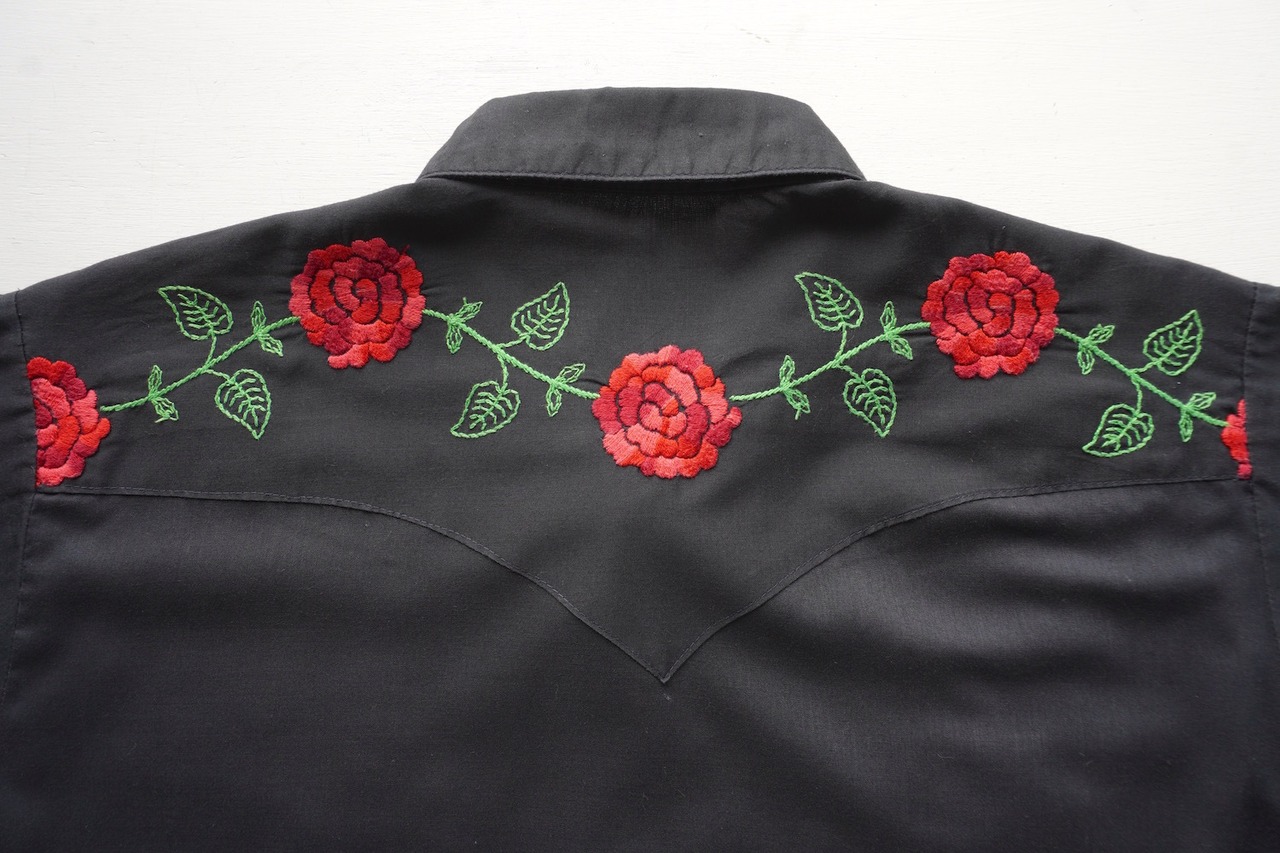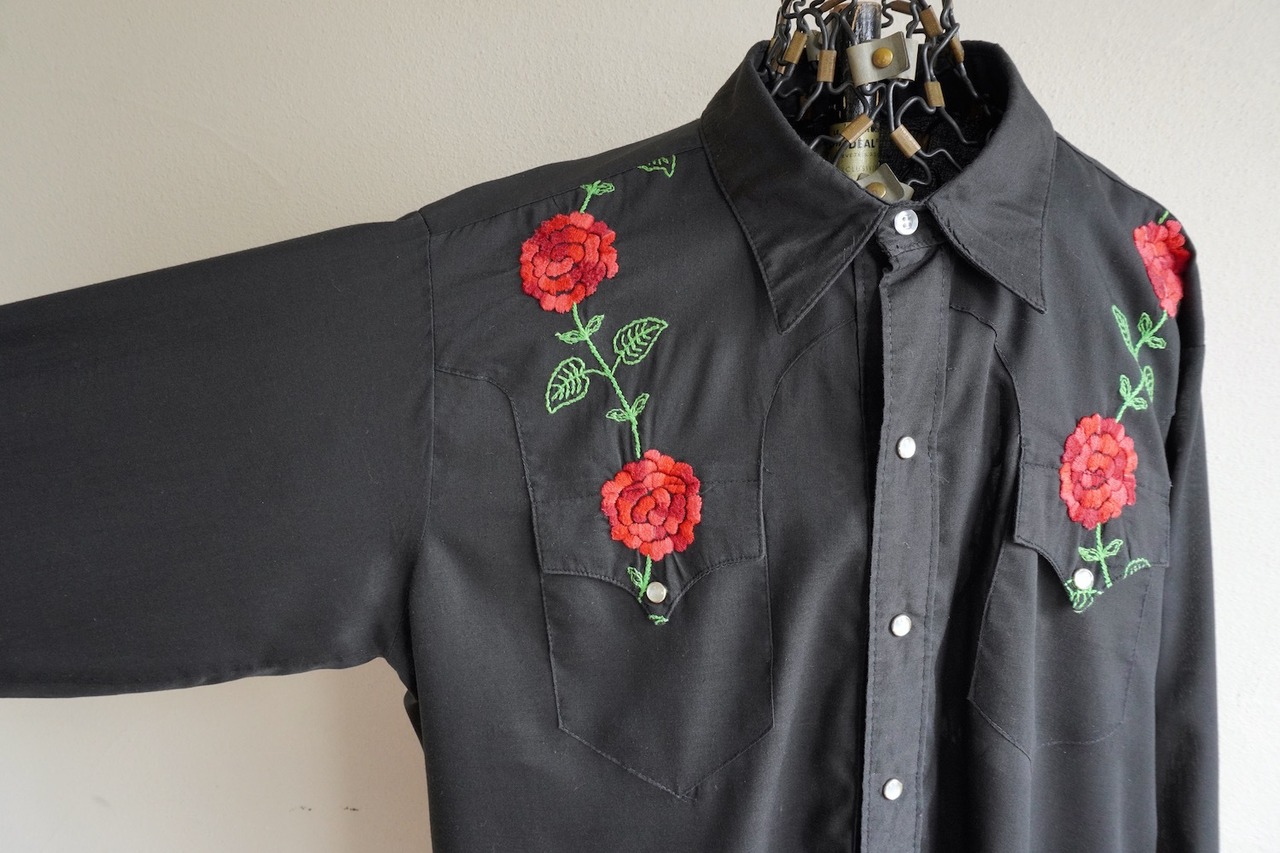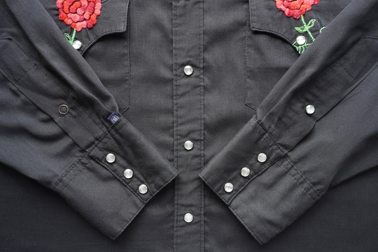 人気のブラックボディに薔薇の刺繍が映える、L/Sウエスタンシャツ。