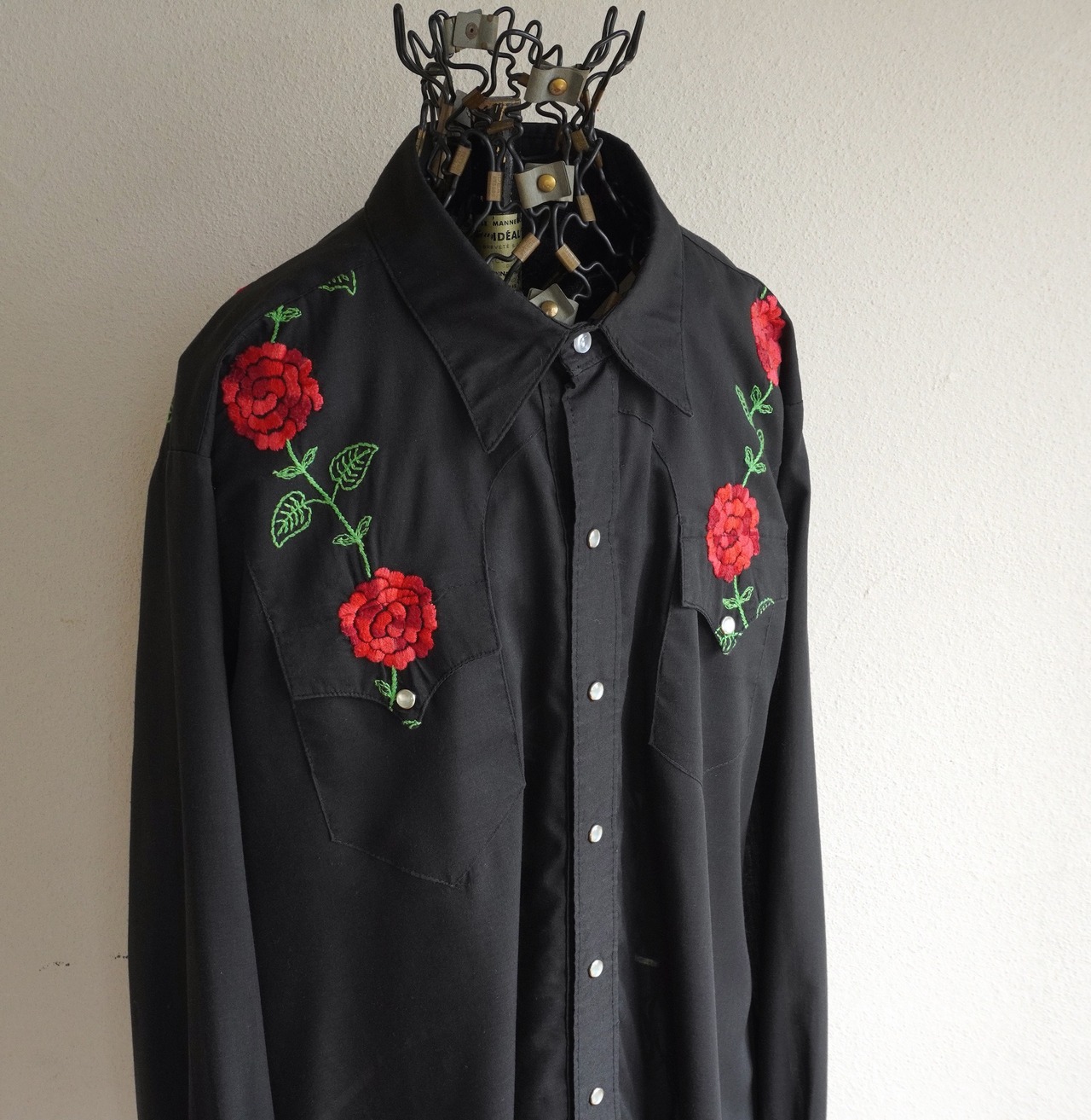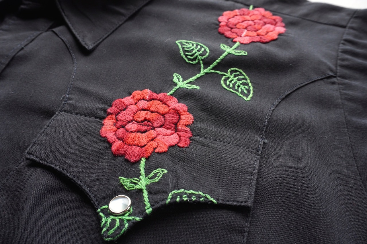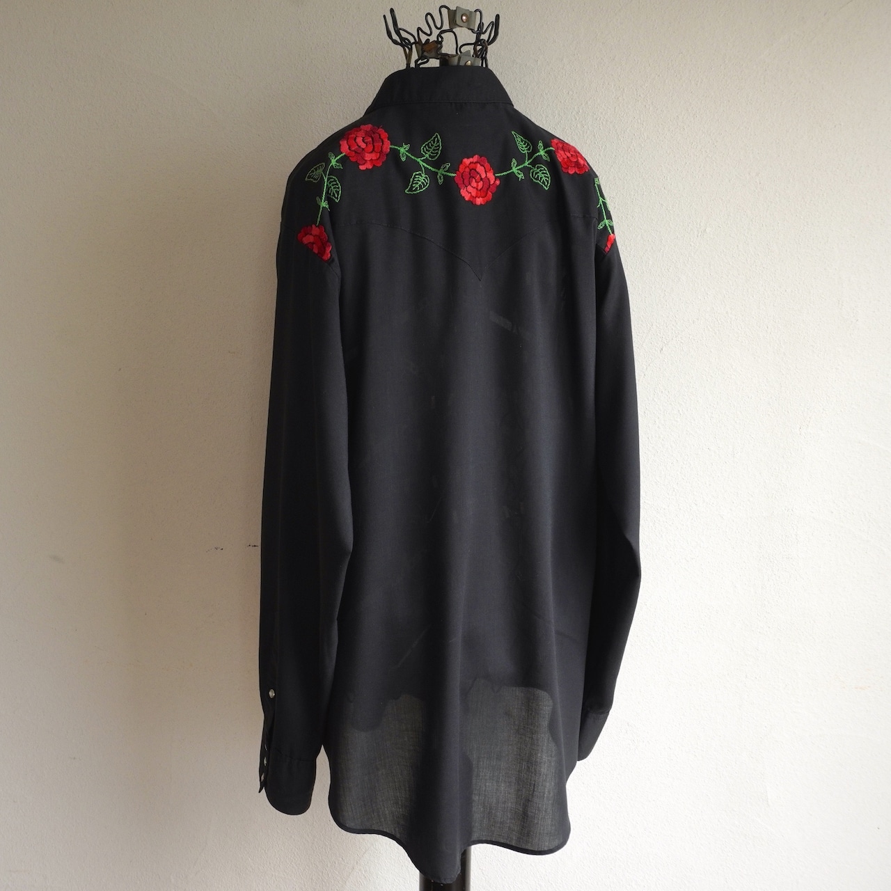人気のブラックボディに薔薇の刺繍が映える、L/Sウエスタンシャツ。