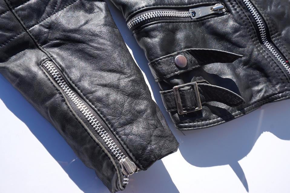 ブラック×ホワイト、2トーンのライダースジャケット。