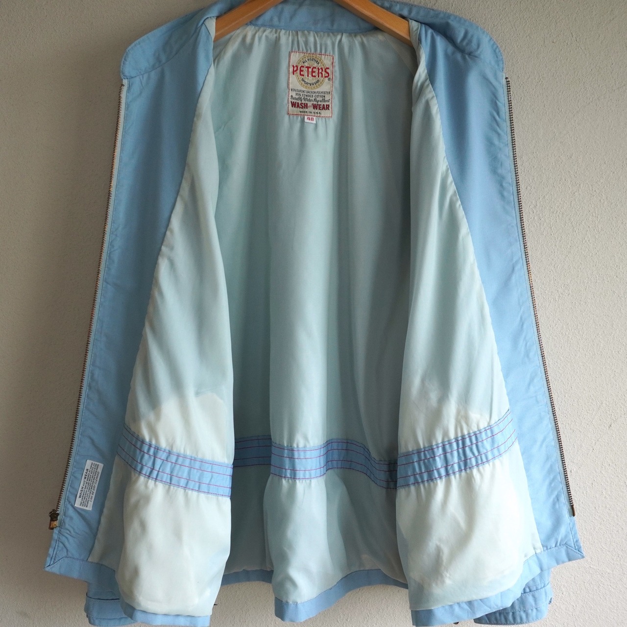1960's USA製 [PETERS] スタンドカラー&ラグランスリーブ ドリズラージャケット スカイブルー 表記(men's 48) TALONジッパー スウィングトップ ヴィンテージ