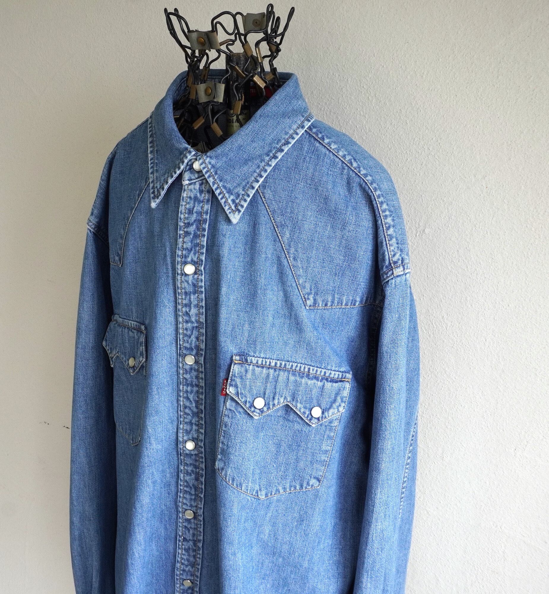 2000's [Levi's] ソートゥースフラップポケット L/S デニムウエスタンシャツ ストーンウォッシュブルー 表記(men's L) リーバイス ヴィンテージ