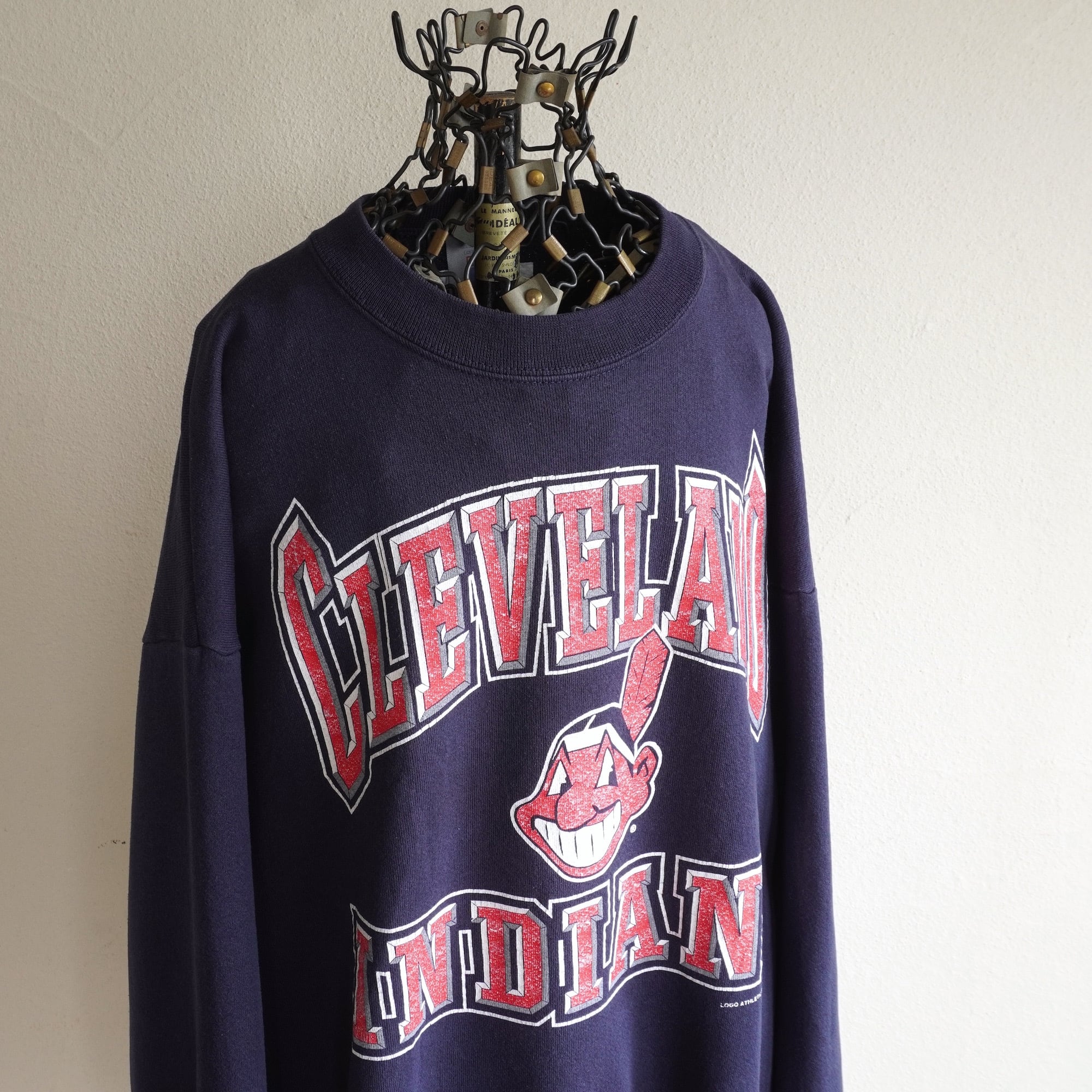 1990's USA製 [LOGO 7] MLB "CLEVELAND INDIANS" プリントスウェット ネイビー 表記(men's XL) クリーブランド・インディアンス ヴィンテージ