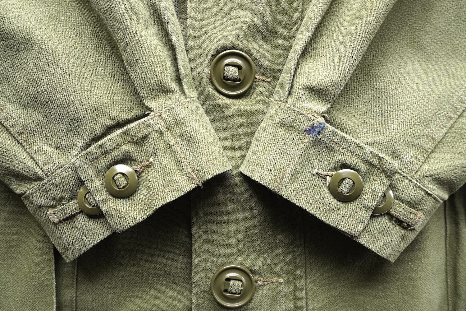 丈夫なパラシュートボタンもカナダ軍らしいディテールで、ジッパーは「CLIX」製。