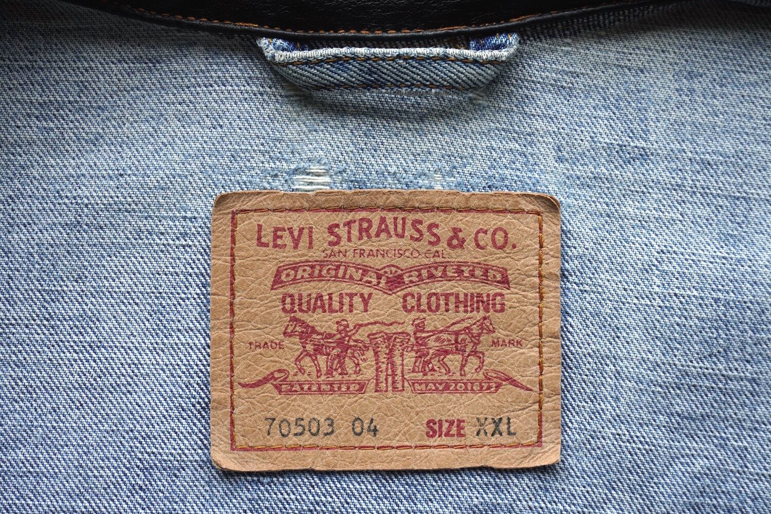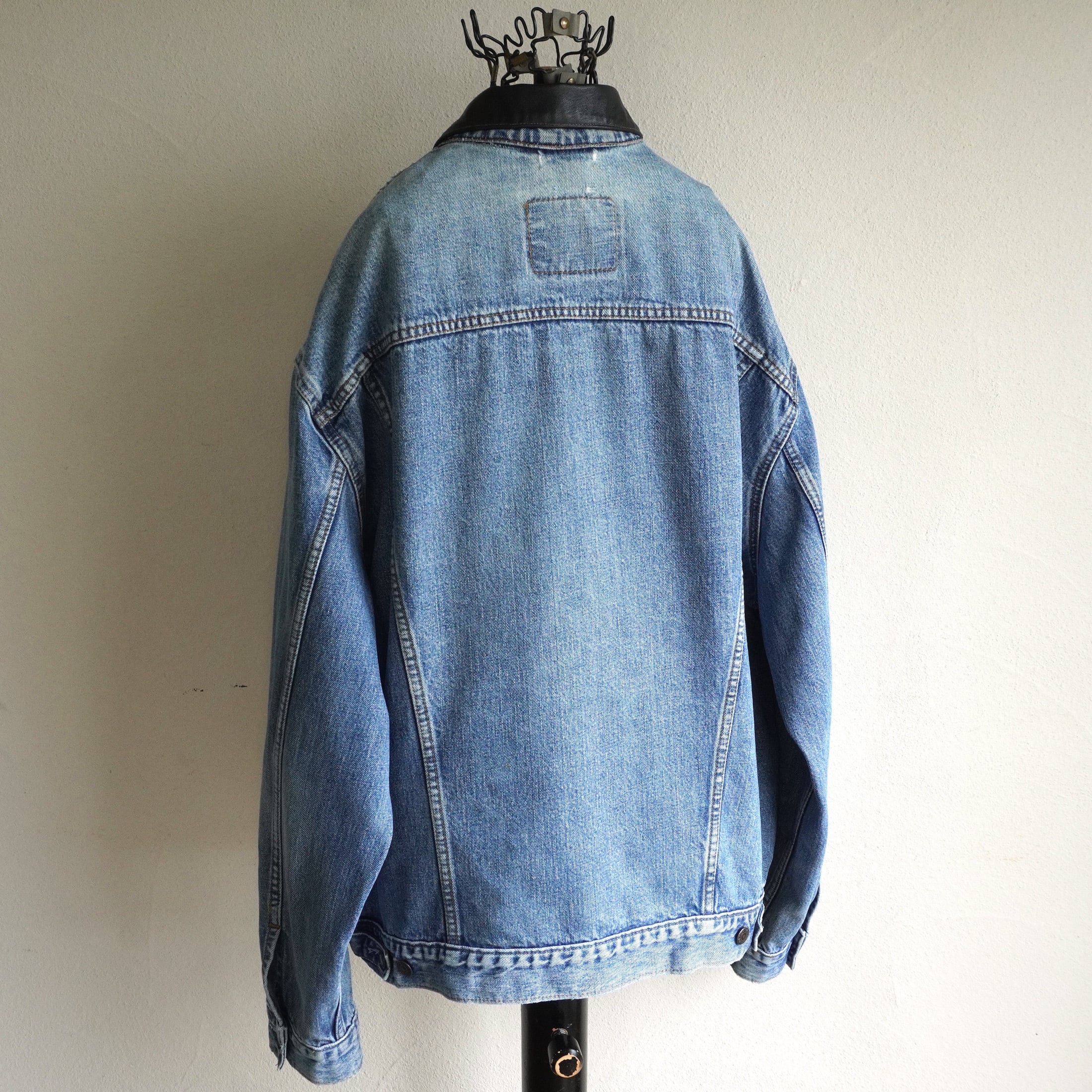 1990's [Levi's] レザーカラーカスタム "70503" 4th型 4ポケット デニムトラッカージャケット 縦落ち・アタリ 表記(men's XXL) ビッグシルエット ジージャン ユーロリーバイス ヴィンテージ