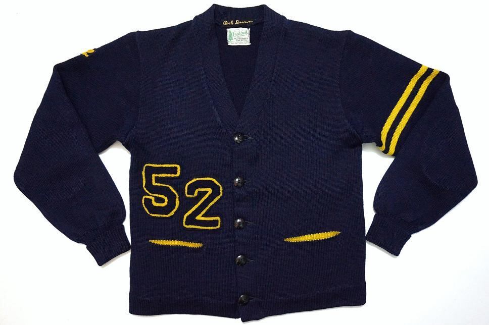 1950’s~60’s Octonek レタードカーディガン ネイビー×イエロー 実寸(ウィメンズM位)