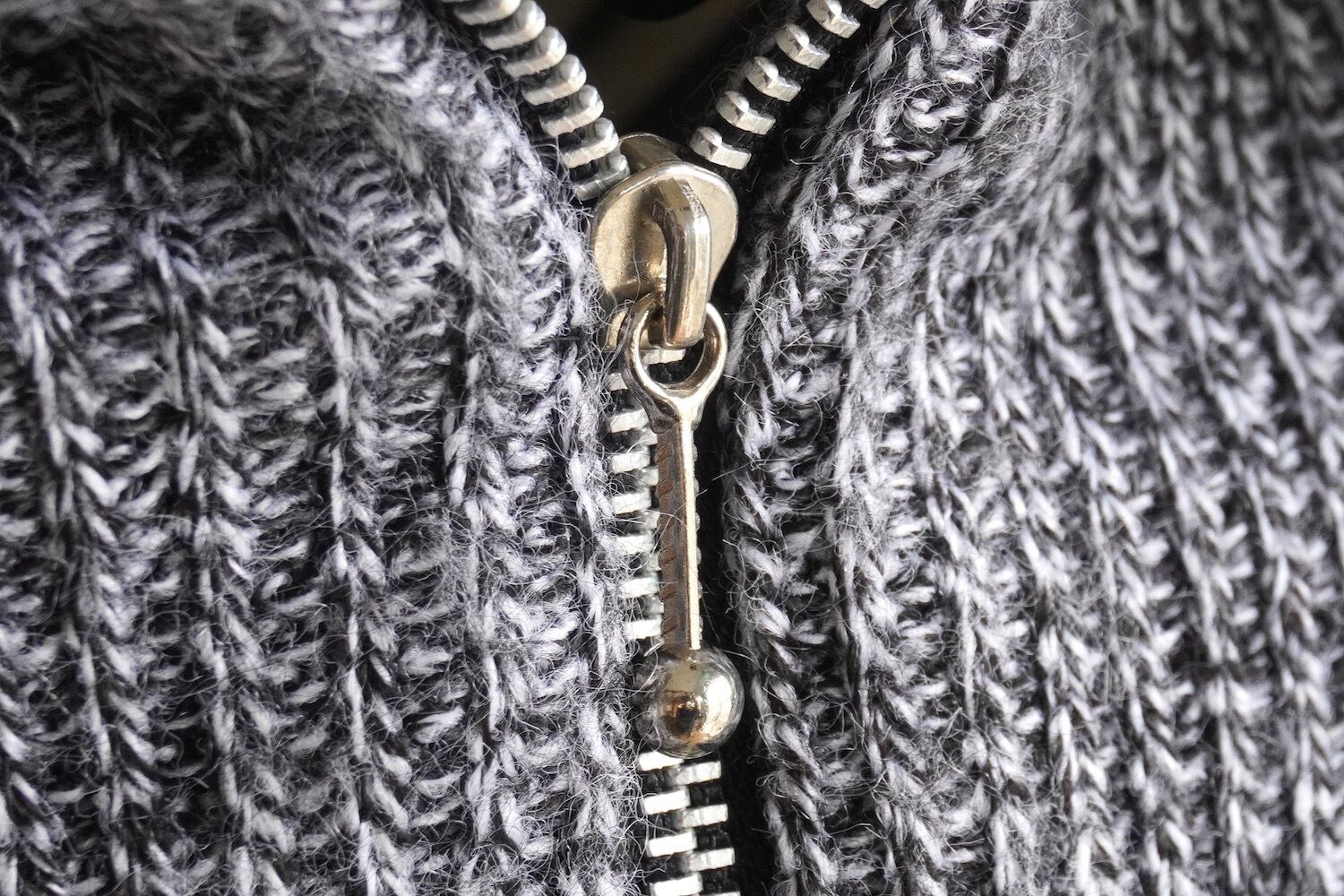 ハーフジップのオフタートルネックが個性的な、ユーロニットセーター。