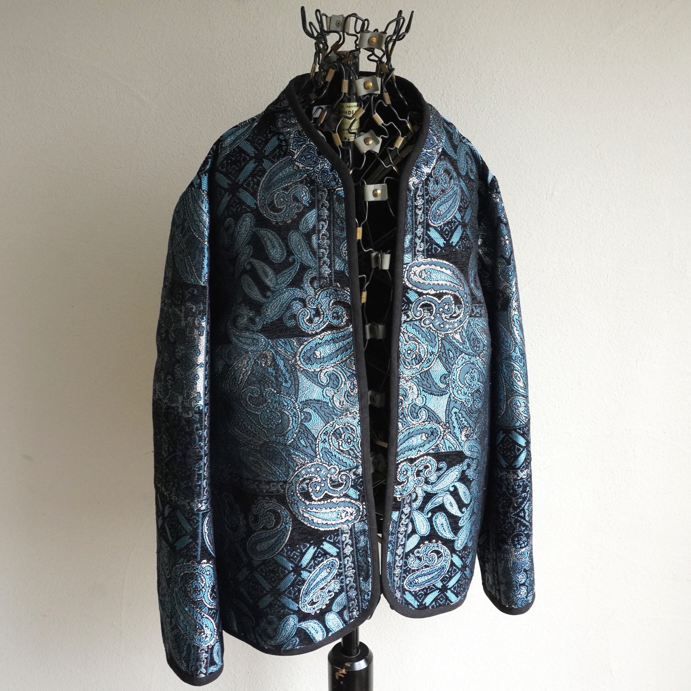 エレガントなペイズリー&ダマスク柄の、タペストリー織り(ゴブラン)オープンフロントジャケット。