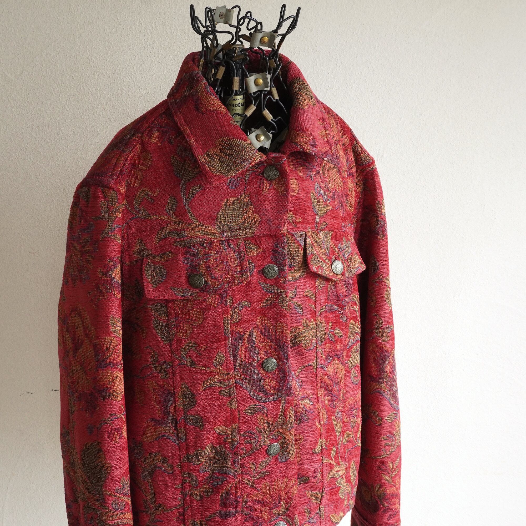 1990's〜 [Coldwater Creek] フローラル柄 ゴブラン トラッカージャケット ターキーレッド 表記(women's PL) タペストリー織り ヴィンテージ