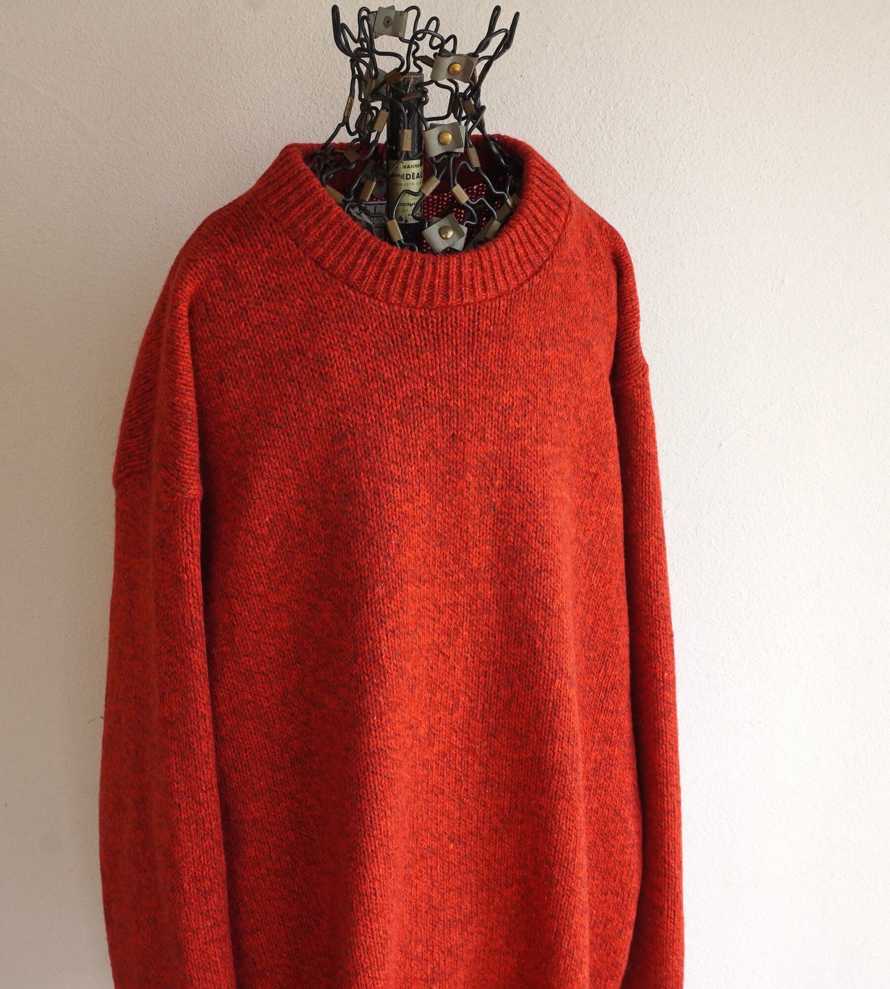 1980's USA製 [L.L.Bean] クルーネックニットセーター 無地 ミックスカラー バーミリオン 表記(men's XXL) ヴィンテージ