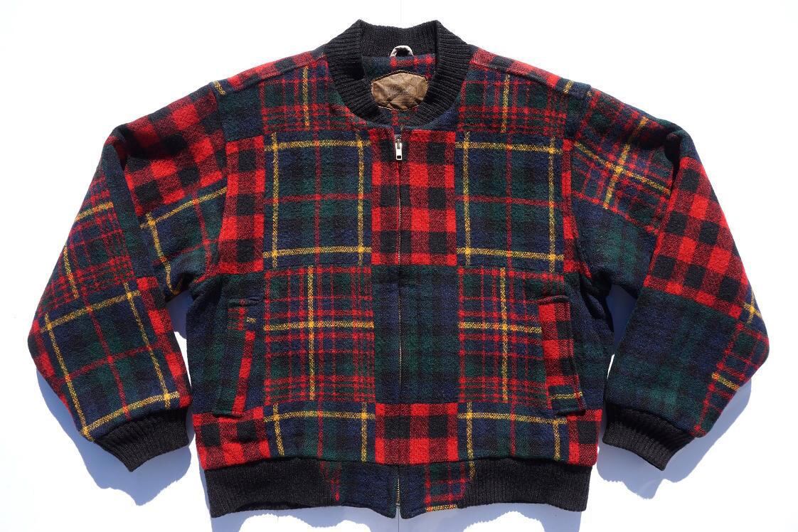 バッファロー、ブラックウォッチ、タータン.. 数種のチェックがパッチワークされたウールブルゾン。