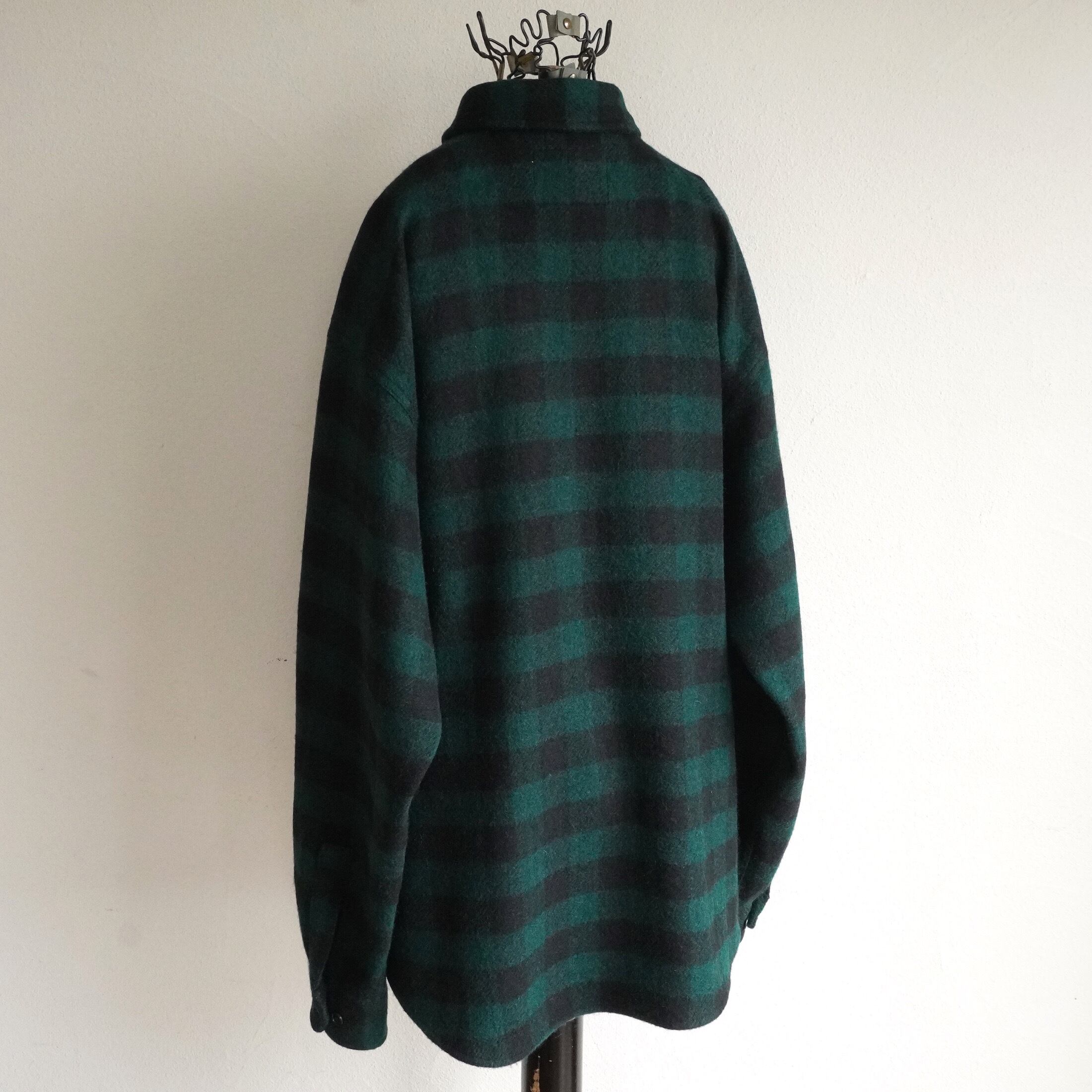 1990's [Woolrich] バッファローチェック L/S ウールシャツ グリーン×レッド 表記(men's XL) ブロックチェック ウールリッチ ヴィンテージ