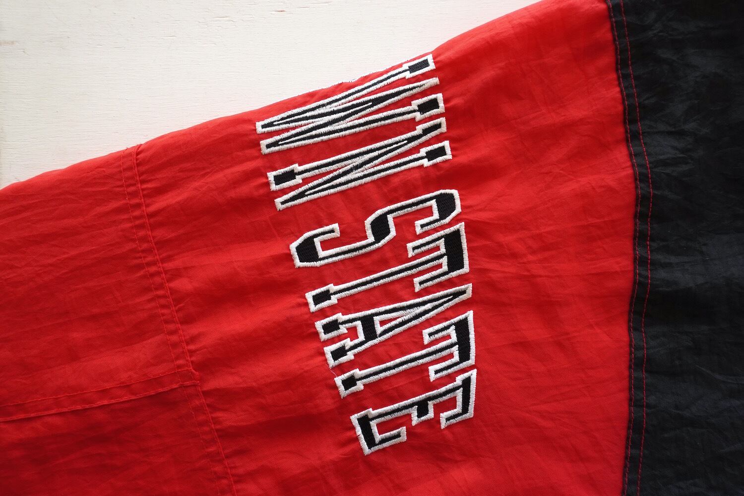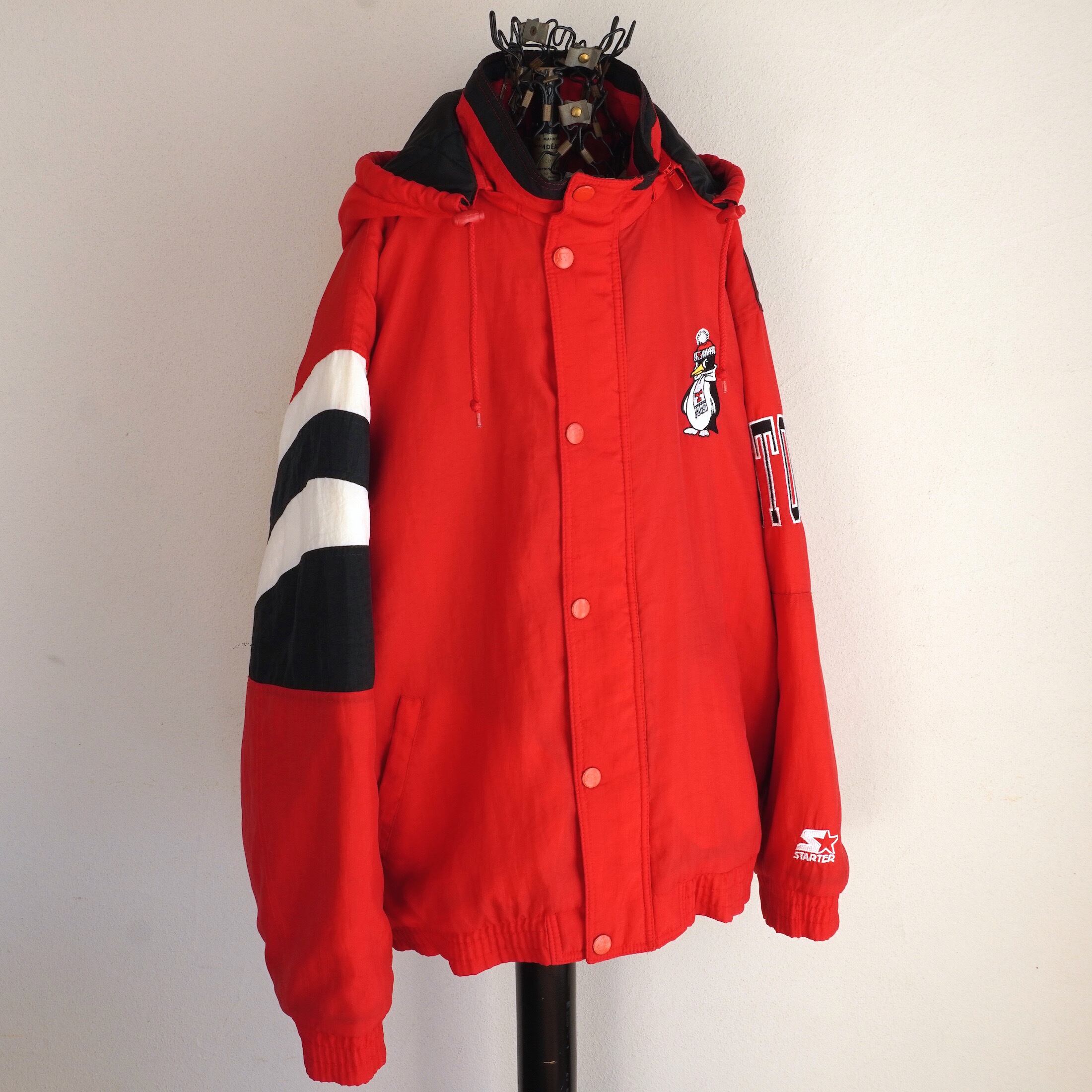 1990's [STARTER] ヤングスタウン州立大学 "YOUNGSTOWN STATE PENGUINS" パデッドブルゾン レッド×ブラック 表記(men's L) デタッチャブルフード カレッジ スターター スタジャン ヴィンテージ | MAGNOLIA WEBSTORE