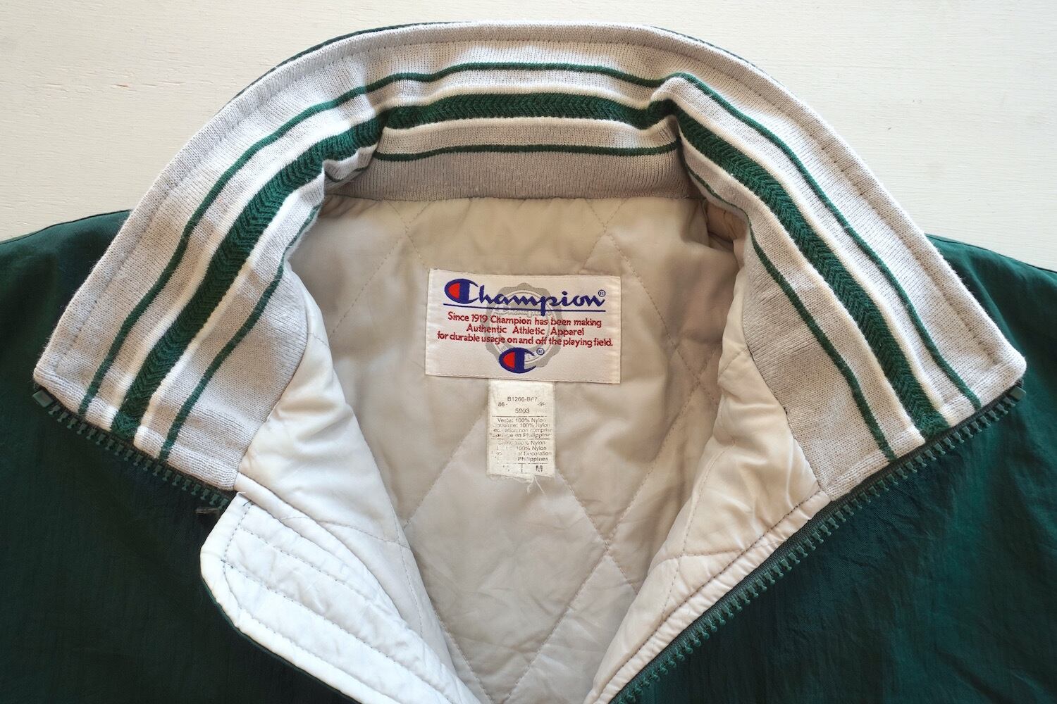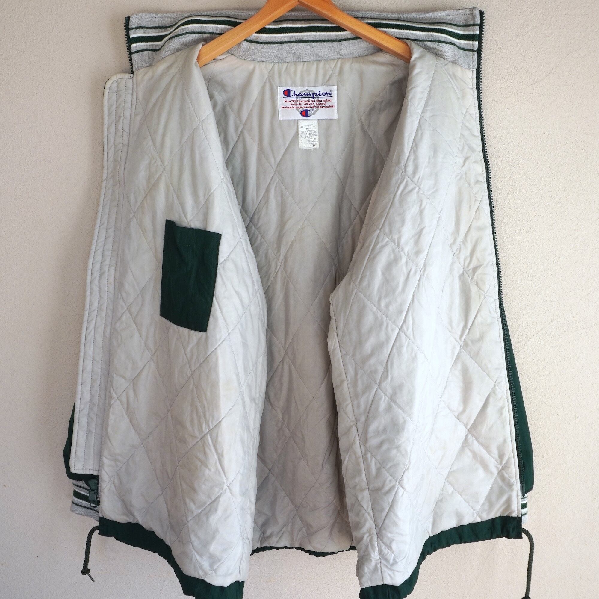 2000's [Champion] DE LA SALLE HIGH SCHOOL "SPARTANS" パデッドジャケット リブライン グリーン 表記(men's M) ベンチコート スパルタンズ チャンピオン ヴィンテージ