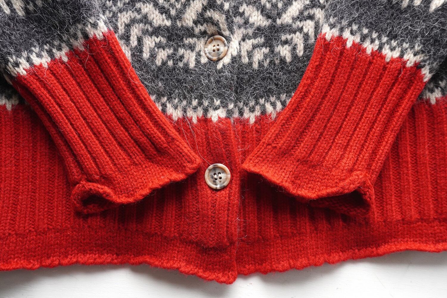 1990年代の"白タグ"が付いた、ウール×アルパカmixのノルディックニットカーディガン。