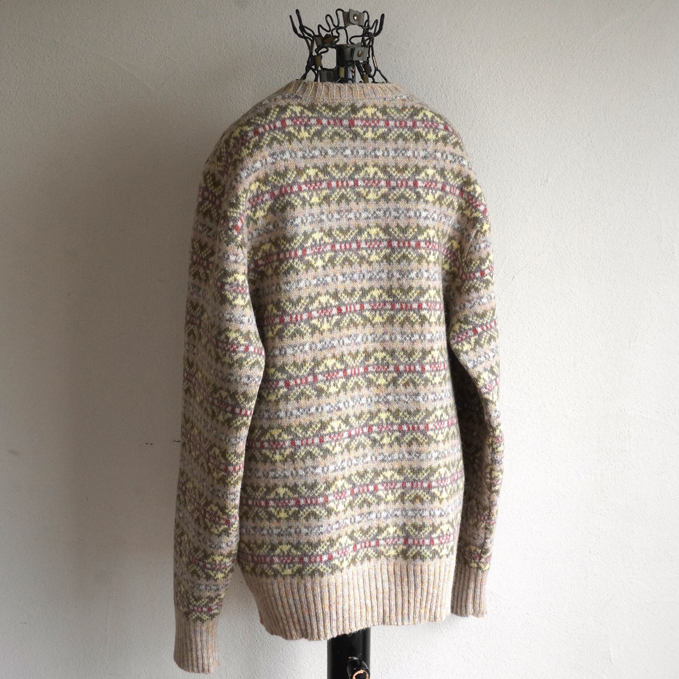 1980's USA製 [LORD JEFF] フェアアイル柄 シェットランドウール クルーネック ニットセーター ベージュ系 表記(men's L) ノルディック ヴィンテージ