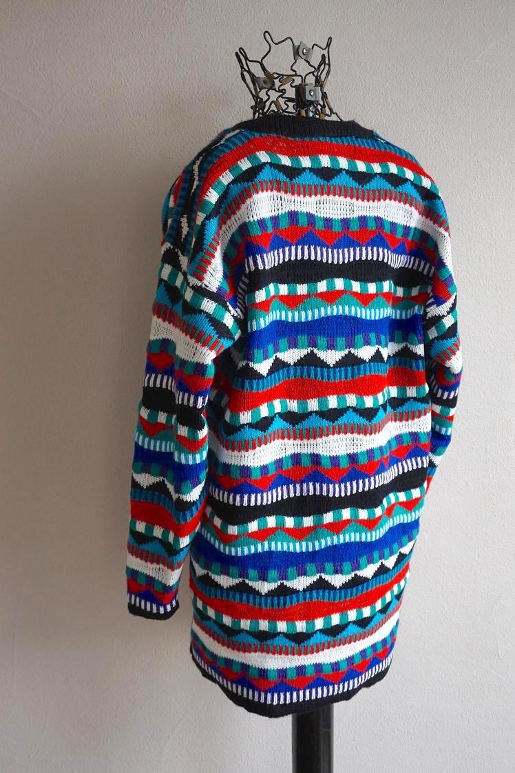 80’s〜90’sらしいマルチボーダー編みのアクリルニットセーター。