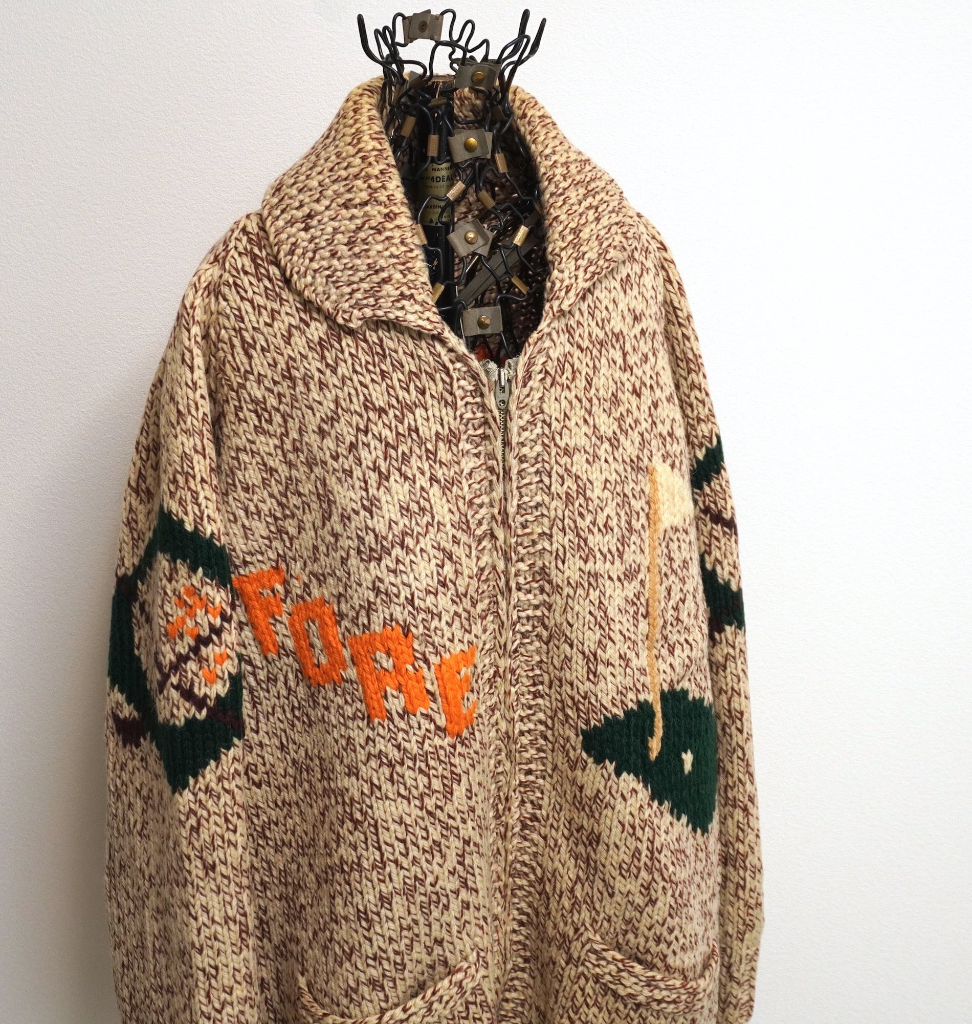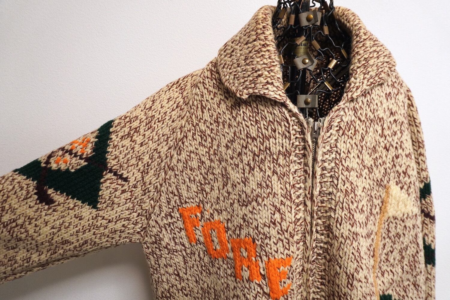 1960's "LIGHTNING"ジッパー ゴルフ柄 カウチンセーター アイボリー×ブラウン 実寸(men's L〜XL程度) ジップアップ ヴィンテージ