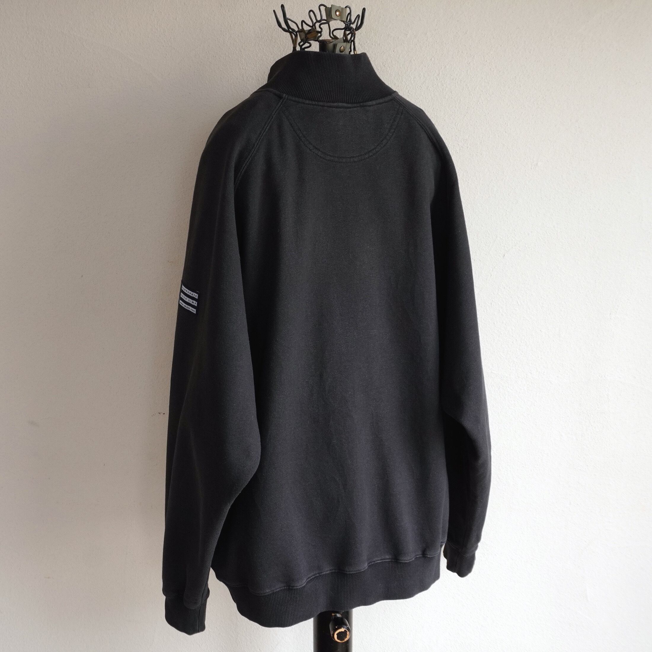 シンプルなワンポイントエンブロイダリーロゴの、ハーフジップスウェット。