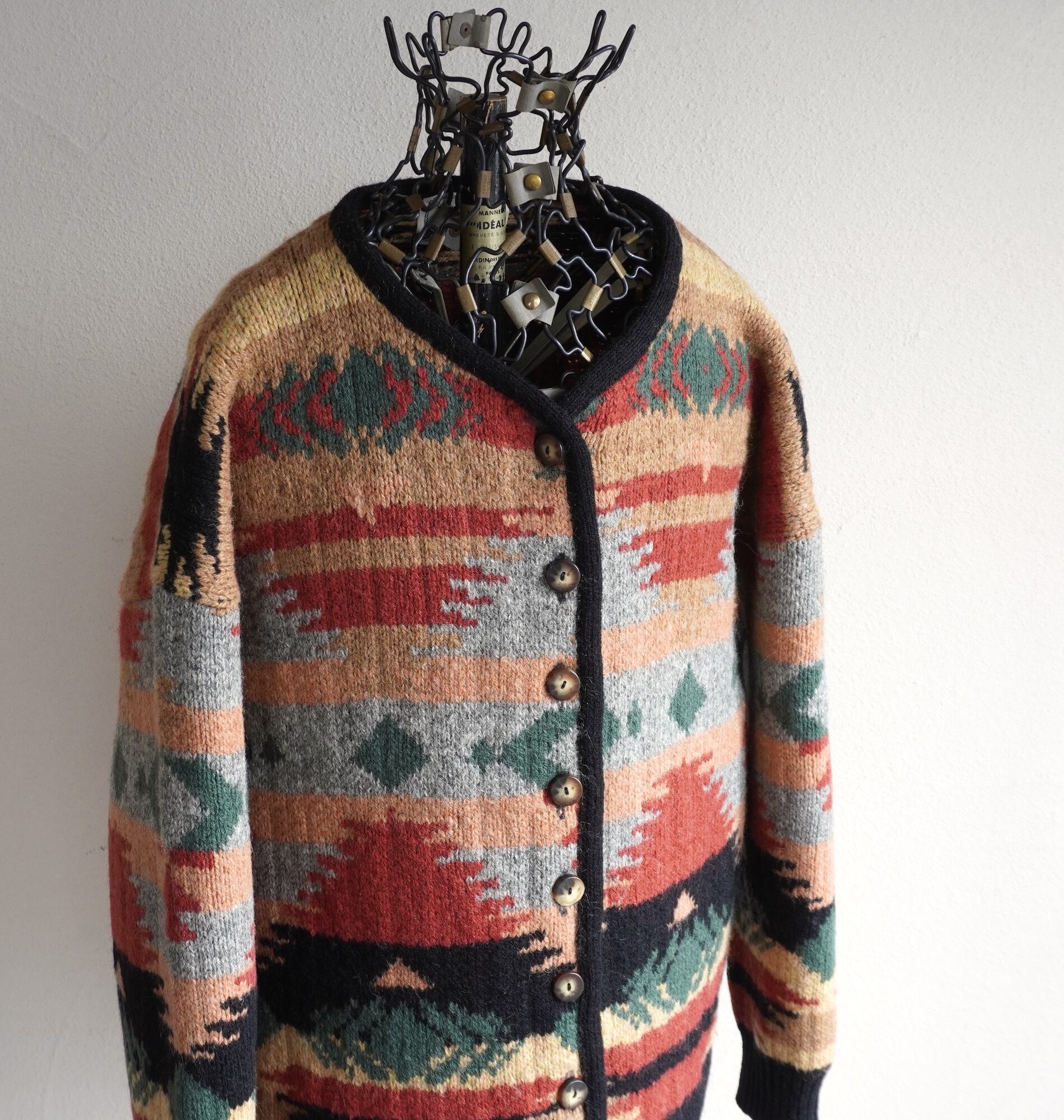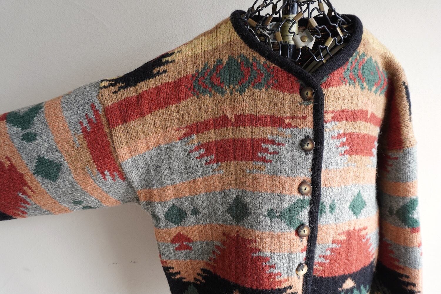 カラーリング&パターンの良いネイティブ柄のニットカーディガン。
