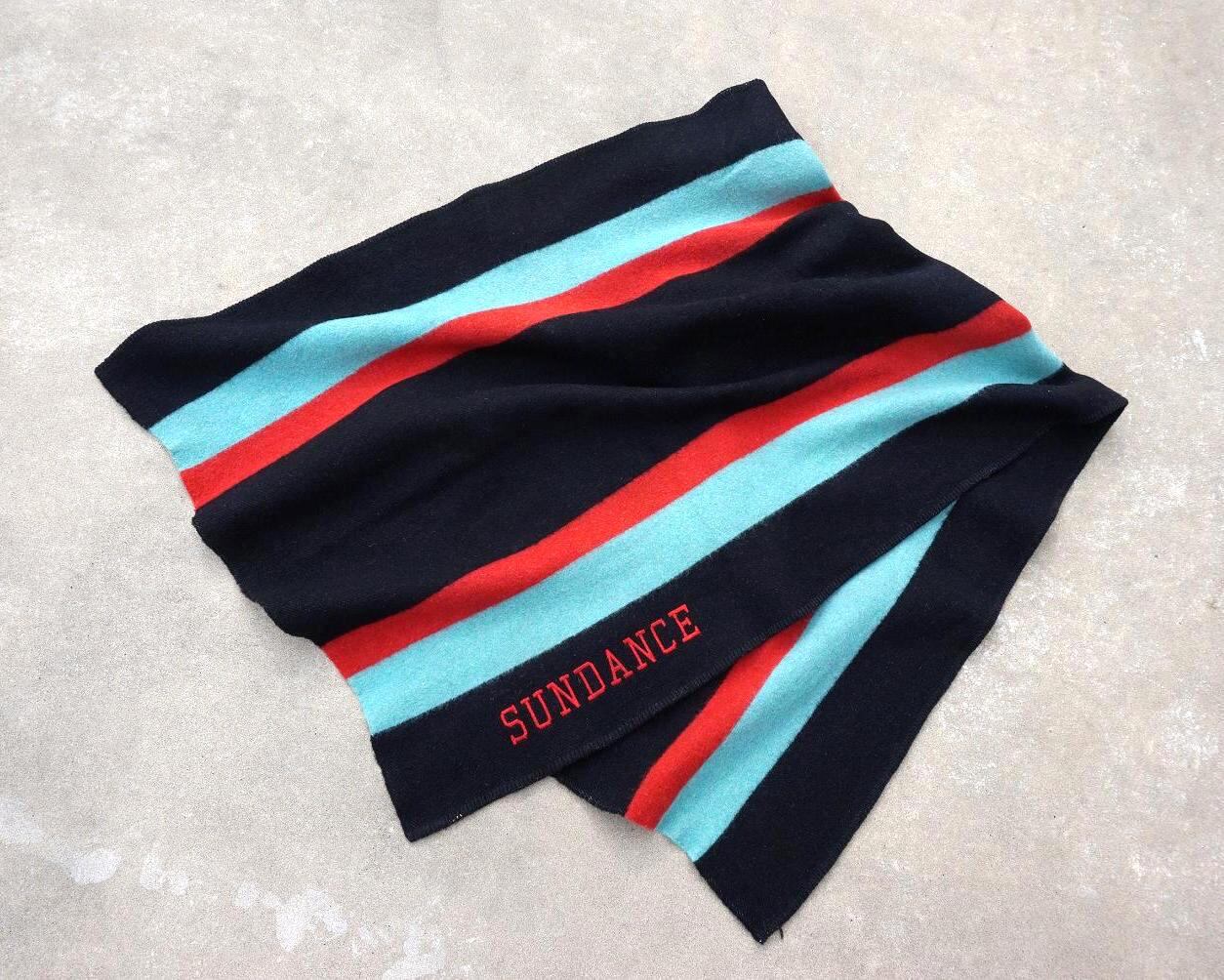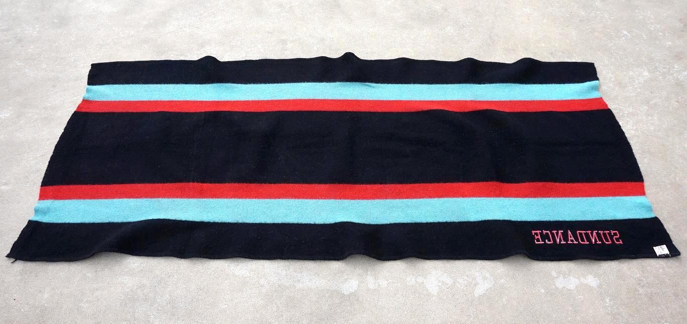 1970’s [Baron woolen mills,inc.] "SUNDANCE" ボーダー柄ウールブランケット ブラック 実寸(H78cm×W183cm)