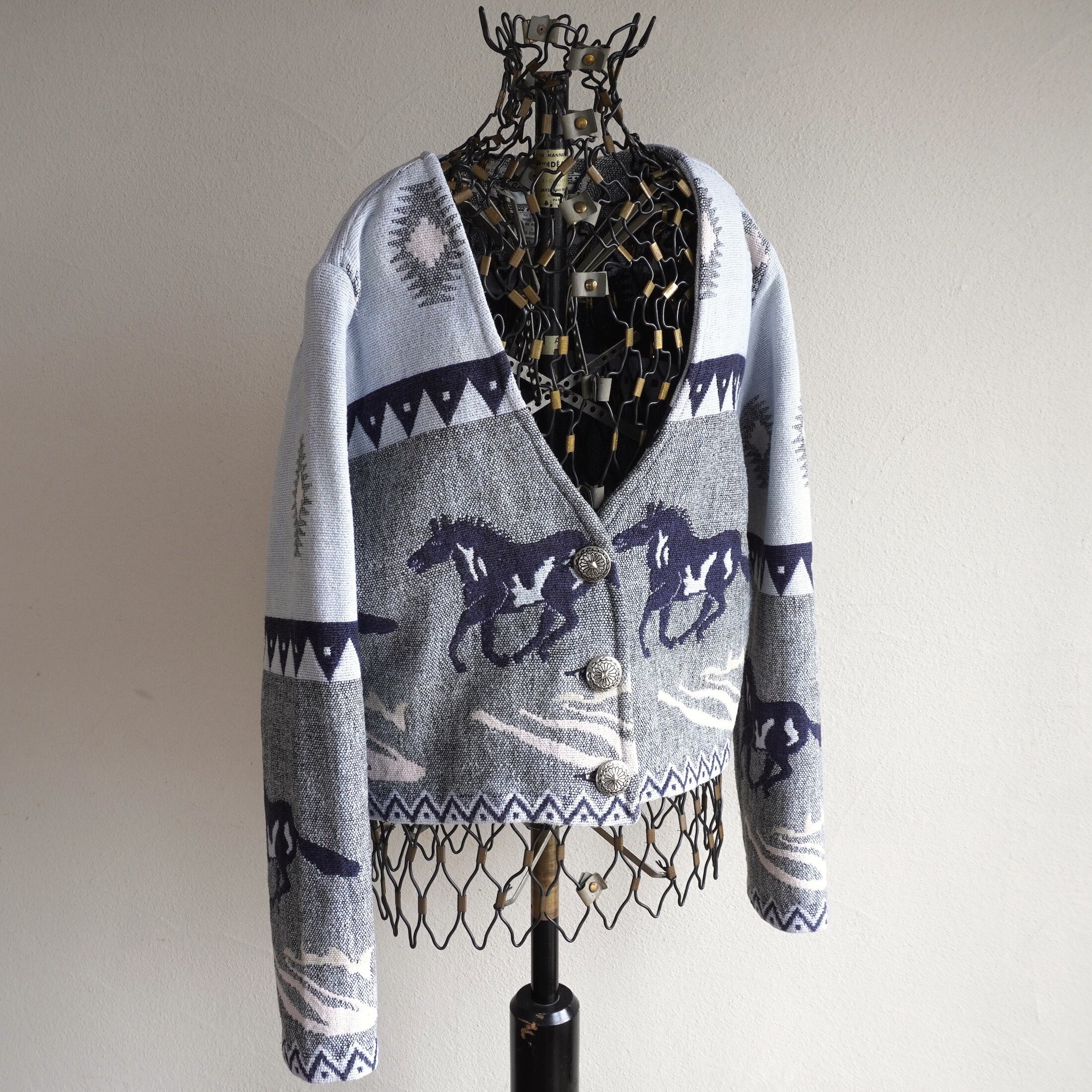 1990's [Southwest Canyon] 馬×ネイティブ柄 コットンラグジャケット ショート丈 ペールブルー 表記(women's L) ヴィンテージ