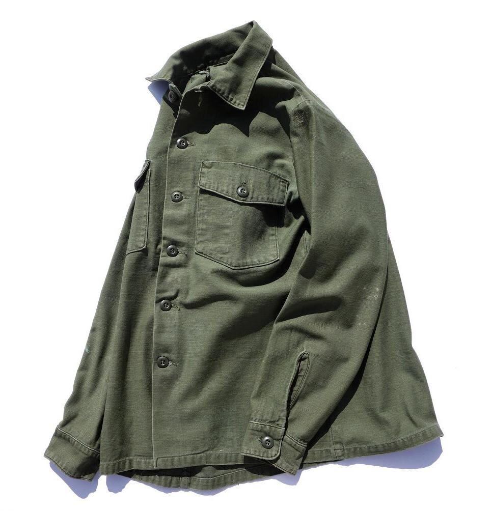 風合いの良いコットンサテン生地のファティーグシャツ。